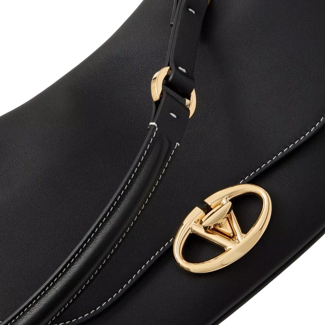 Introducing the small Valentino Garavani Ohval shoulder bag in nappa calfskin, crafted from luxurious nappa leather and featuring a VLogo Signature twist-lock closure. This chic bag offers versatile carrying options – it can be carried over the shoulder/crossbody, thanks to its handle and adjustable leather shoulder strap.