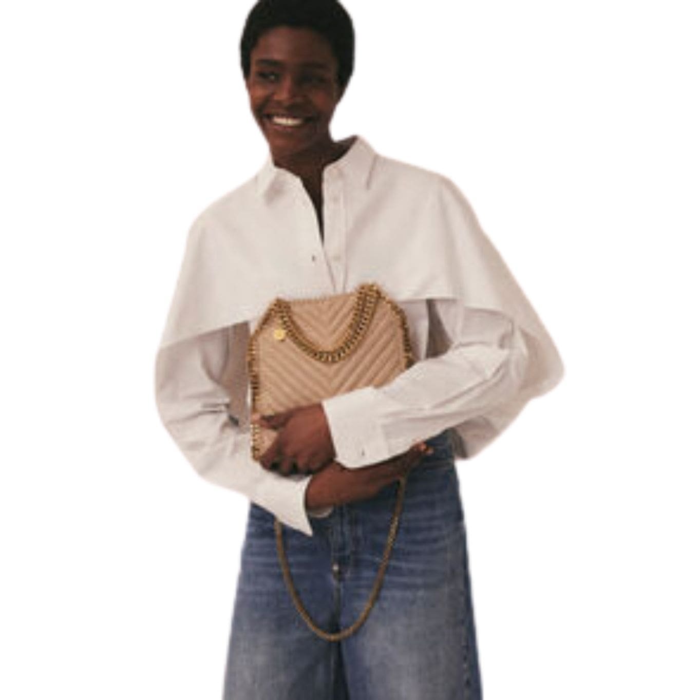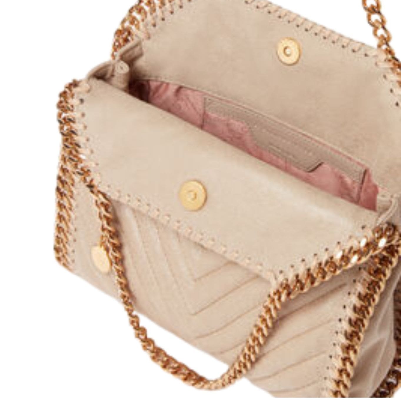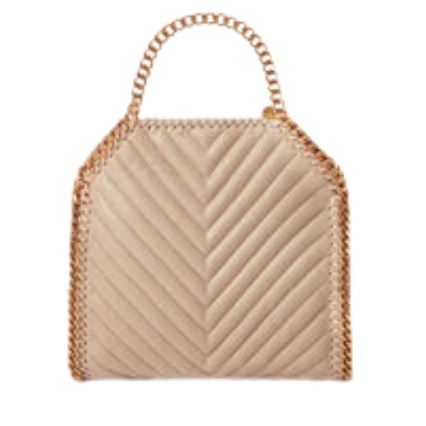Introducing the limited-edition STELLA McCartney Falabella chevron quilted Mini Tote bag, a rare vegan icon reinterpreting our signature silhouette with a quilted chevron design. Handcrafted in Italy from luxurious animal-free alternatives, it exudes elevated everyday appeal in versatile beige. The gold glimmer of the recycled brass handle and recyclable aluminum wraparound chain add a touch of sophistication. Available exclusively online.