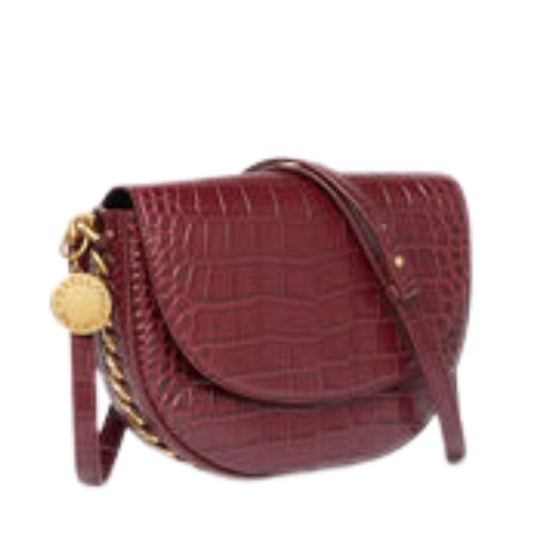 Features of Stella Mccartney Frayme Croc-Effect Embossed Medium Flap Shoulder Bag
