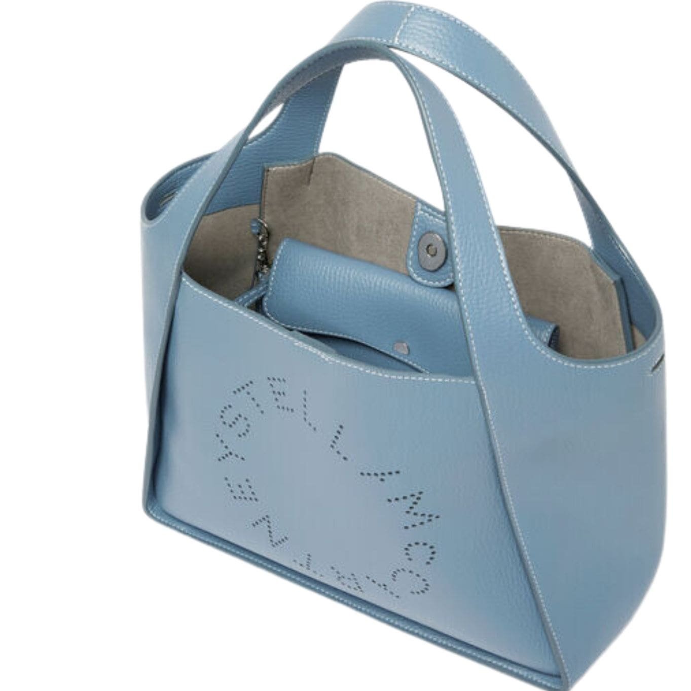Detail: Perforated Stella McCartney circular logo on front, contrast single topstitching
