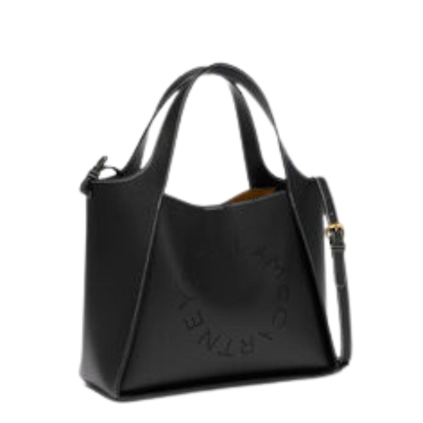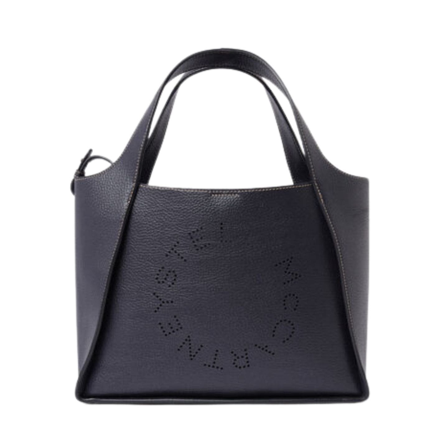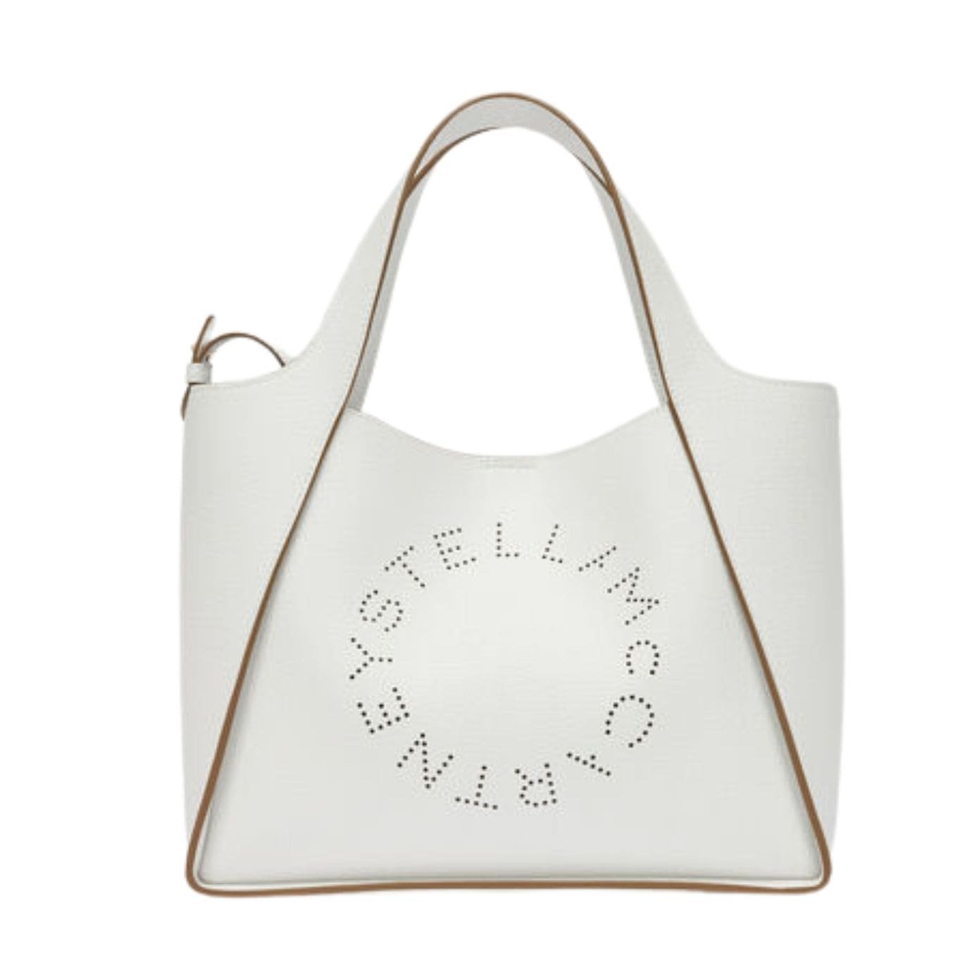 Detail: Perforated Stella McCartney circular logo on front, contrast single topstitching