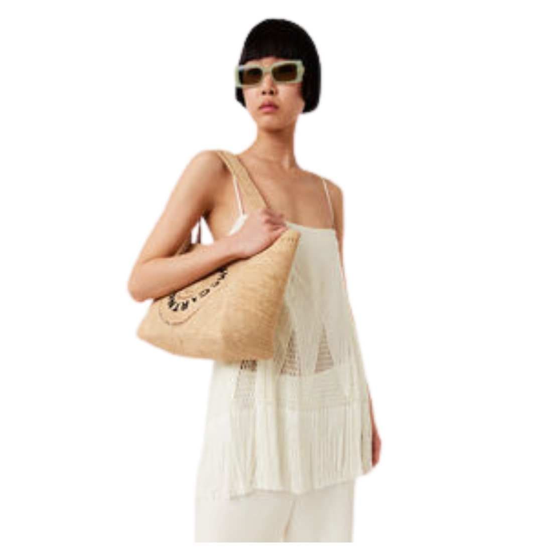 STELLA MCCARTNEY LOGO RAFFIA LARGE TOTE BAG