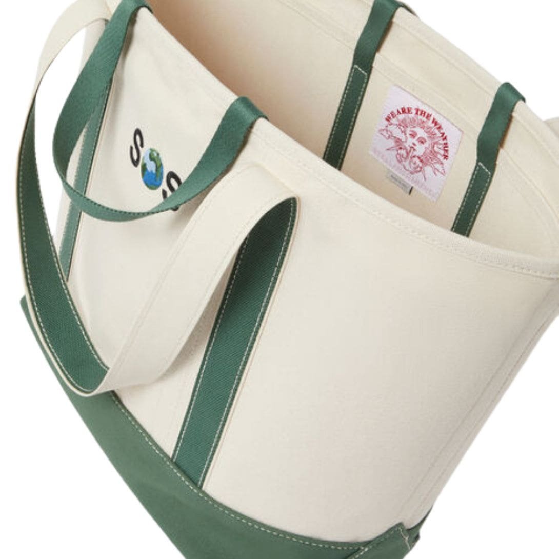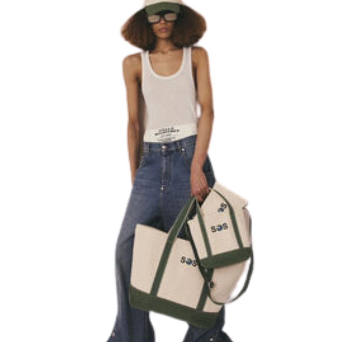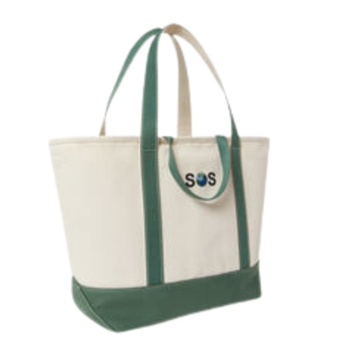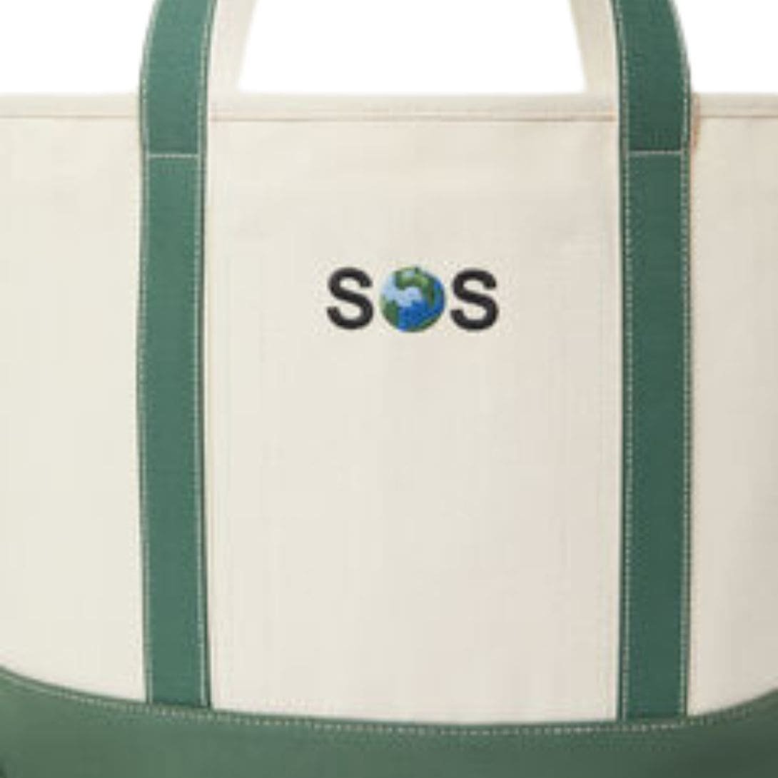 At Stella McCartney, we honor Earth Day every day. Our SOS Capsule celebrates sustainability and our planet, showcasing products crafted from 100% conscious fabrics. This STELLA MCCARTNEY sos embroidered large tote bag, in soft Dune beige organic cotton canvas, features an embroidered SOS logo on the front. Designed for versatility, it boasts Amazon green handles and a contrasting panel on the bottom. With ample space to fit all your daily essentials and a 15” laptop, it allows you to carry groceries while raising awareness for our planet. For every purchase from the SOS Capsule, Stella McCartney will donate a minimum of €15,000 to Conservation International.