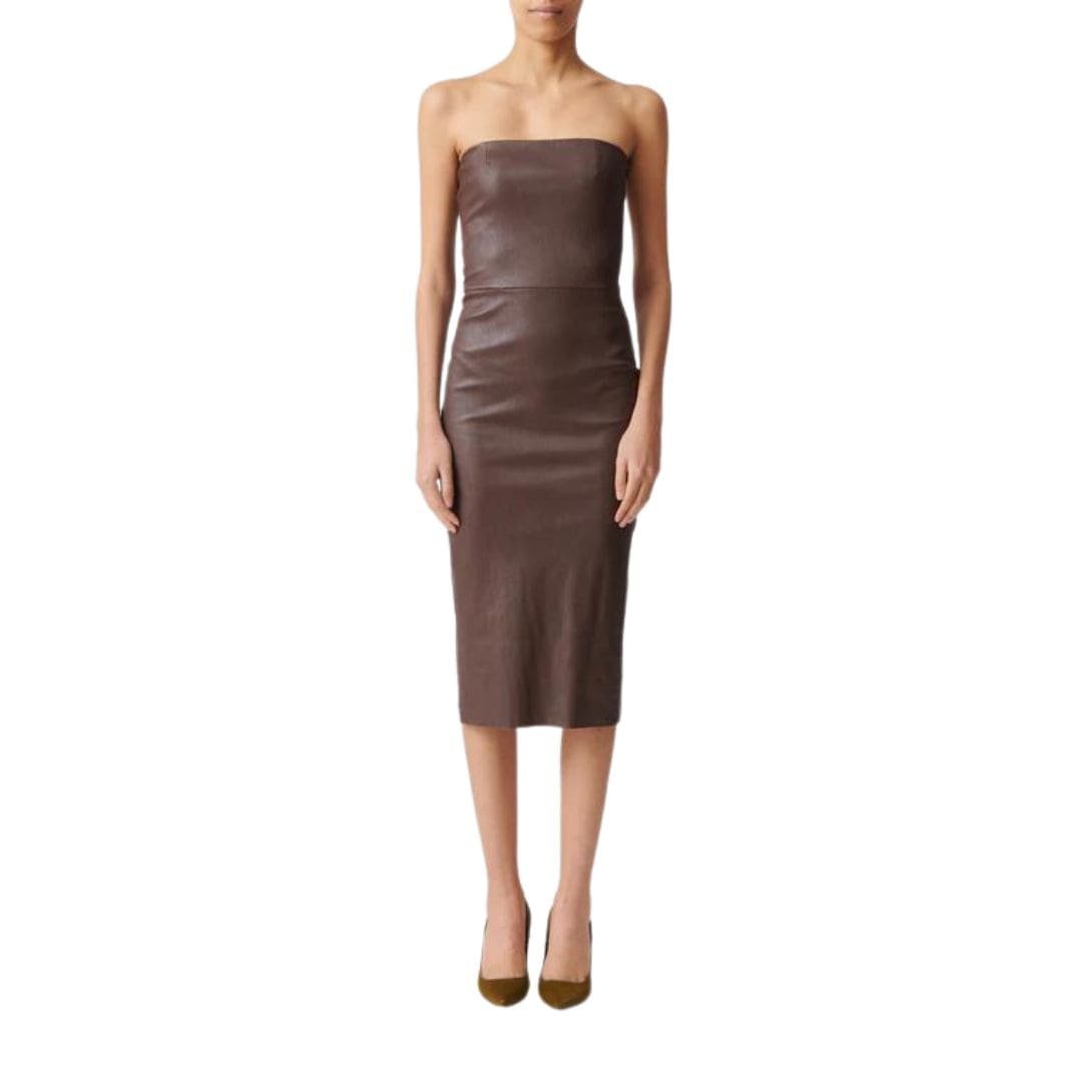 STOULS MONA STRAPLESS LEATHER DRESS