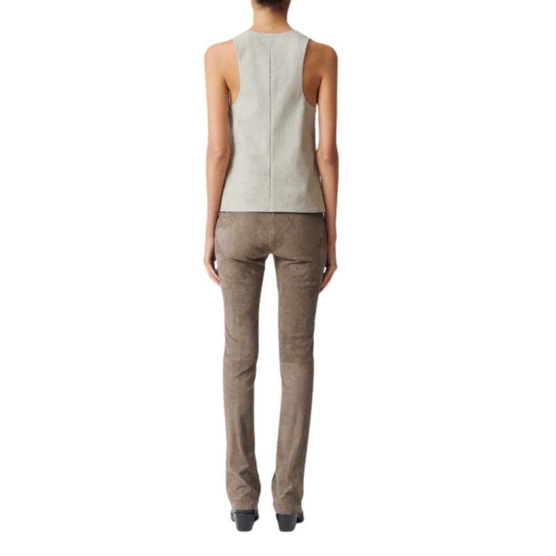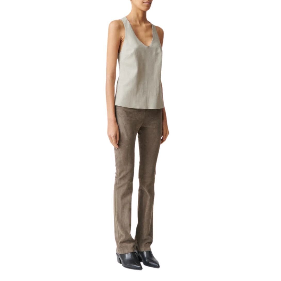 Experience the epitome of luxury and style with the Stouls Pablo Leather Tank Top epitomizes modern luxury with its sleek design and impeccable craftsmanship. Crafted from supple leather, this tank top offers a luxurious feel against the skin while exuding an edgy yet sophisticated aesthetic. Its minimalist silhouette boasts clean lines and a flattering fit, making it a versatile piece that effortlessly transitions from day to night. Whether layered under a blazer for a polished daytime look or paired with statement trousers for a chic evening ensemble, the STOULS Pablo Leather Tank Top adds a touch of effortless cool to any outfit. Perfect for the fashion-forward individual looking to elevate their wardrobe with a timeless staple that exudes both style and substance.