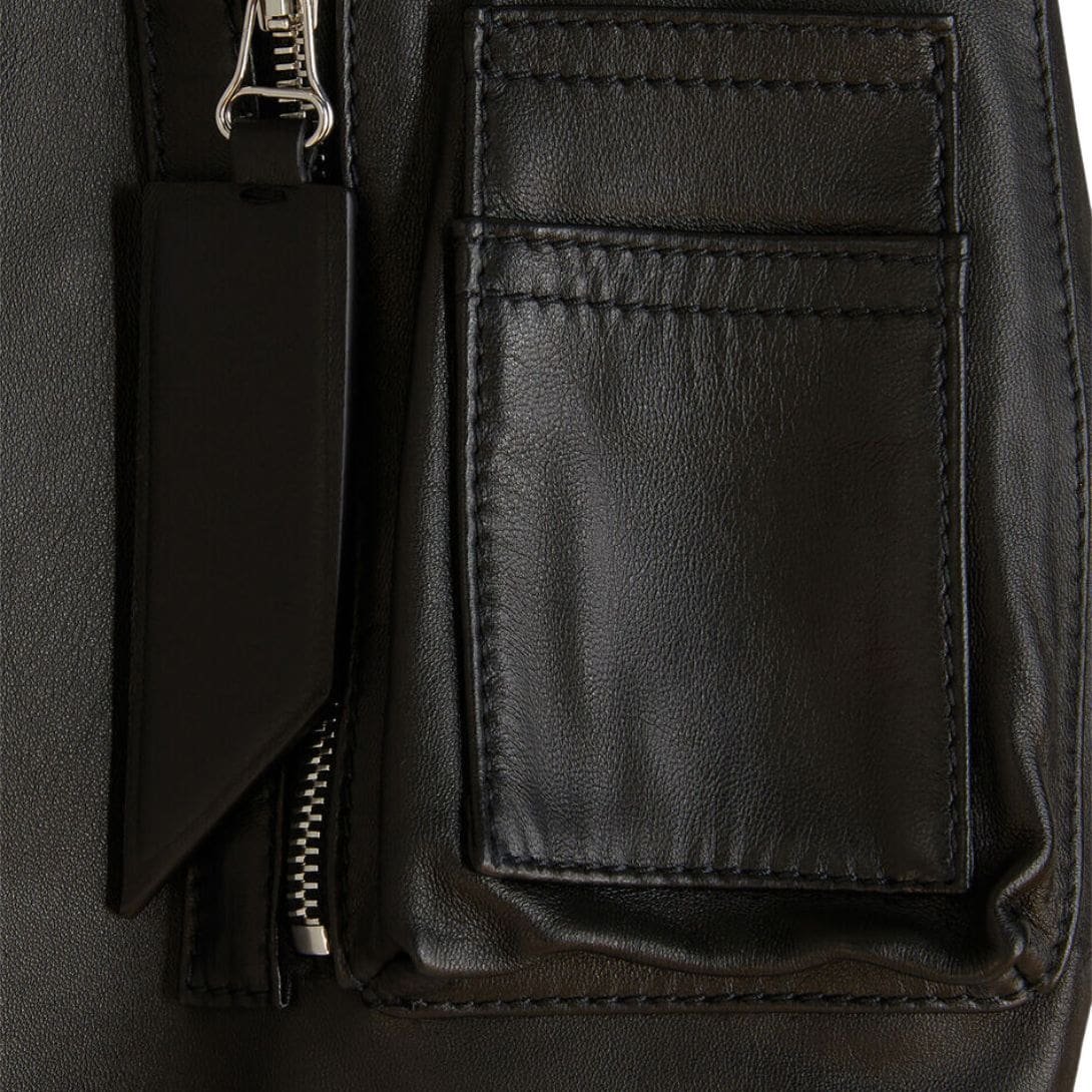 Elevate your outerwear collection with the Attico Anja Black Bomber. This stunning piece is crafted from premium black lamb leather and features a luxurious black jacquard logo lining. Made in Romania, the bomber exudes both style and quality.