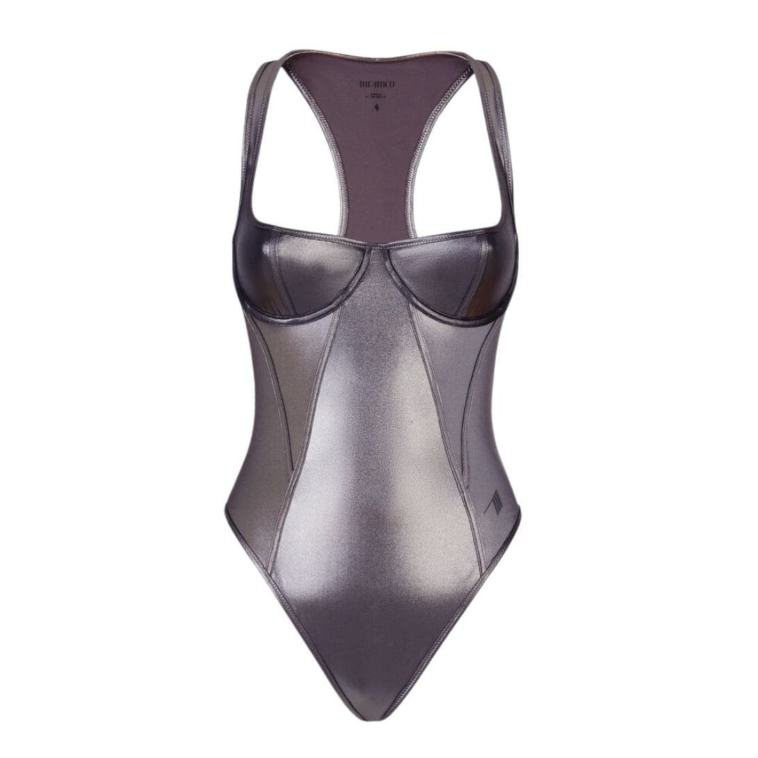 The Attico Dark Silver Bikini Metallic Lycra with Balconette Neckline and Embroidered Logo – Made in Italy