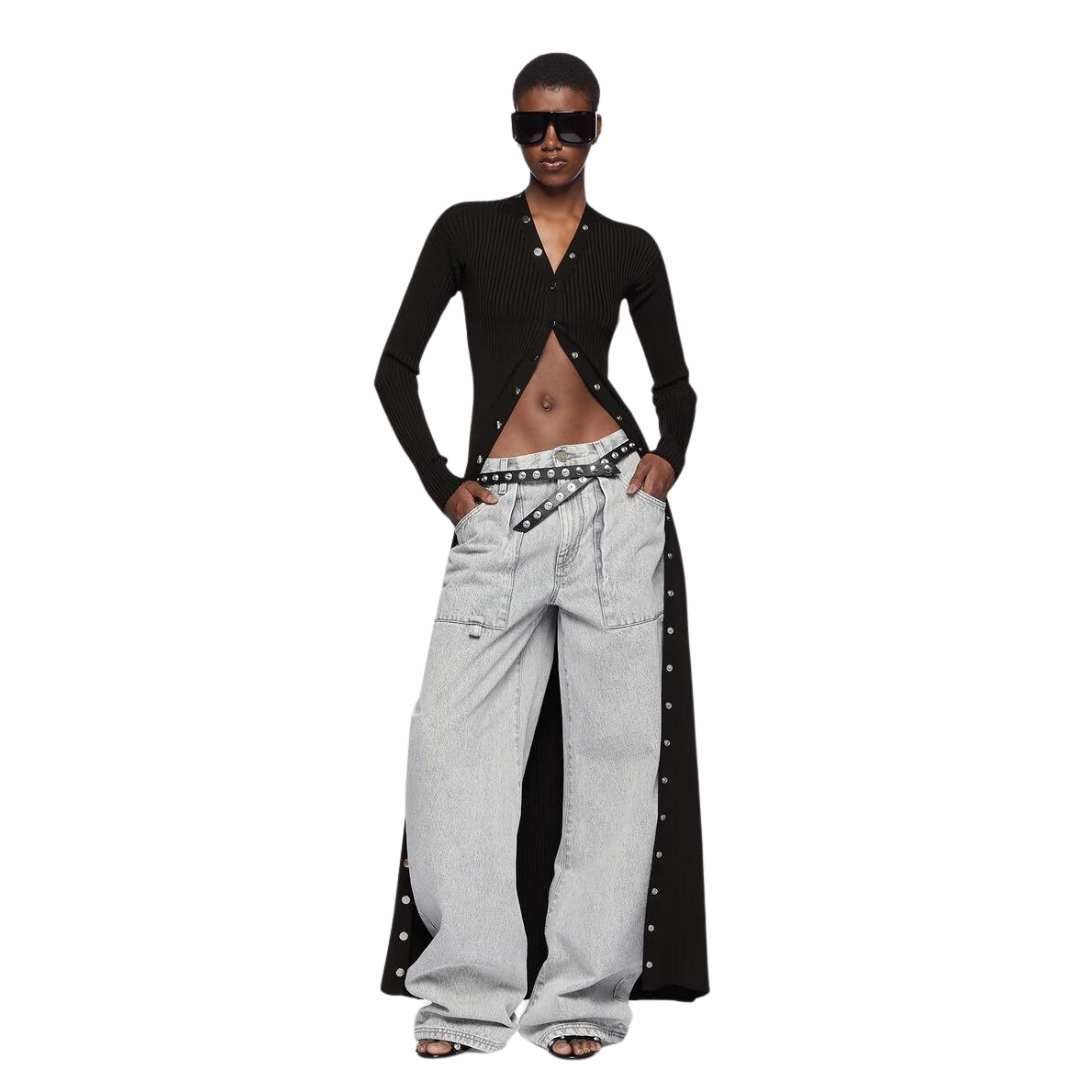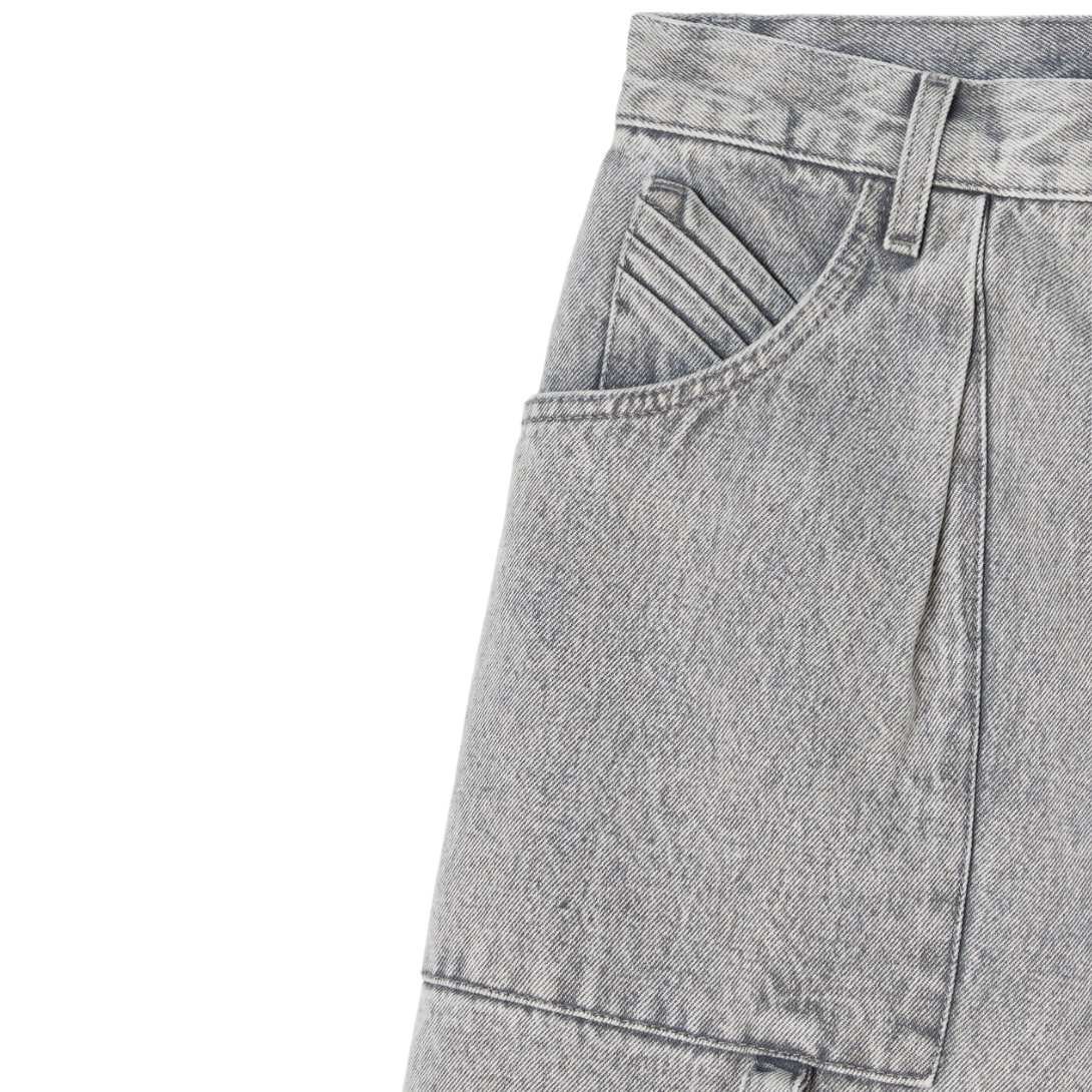 The attico effie light grey long pants feature a wide leg, front patch pockets, and a folded fifth pocket. Made in Italy.
