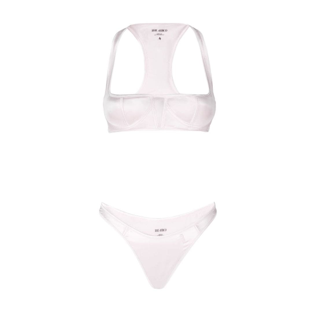 The Attico Light Pink One Piece Satin Lycra with Balconette Neckline and Embroidered Logo – Made in Italy
