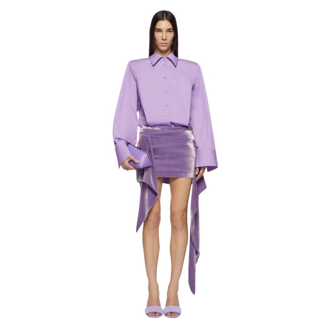 The Attico ”Margot” Lavender Mini Dress in lavender parachute poplin with embroidered logo. Made in Italy.