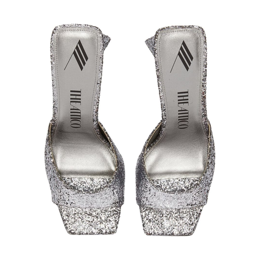 The Attico ”Mini Devon” Anthracite Mule in anthracite glitter with pyramid heel, height 85mm. Made in Italy.