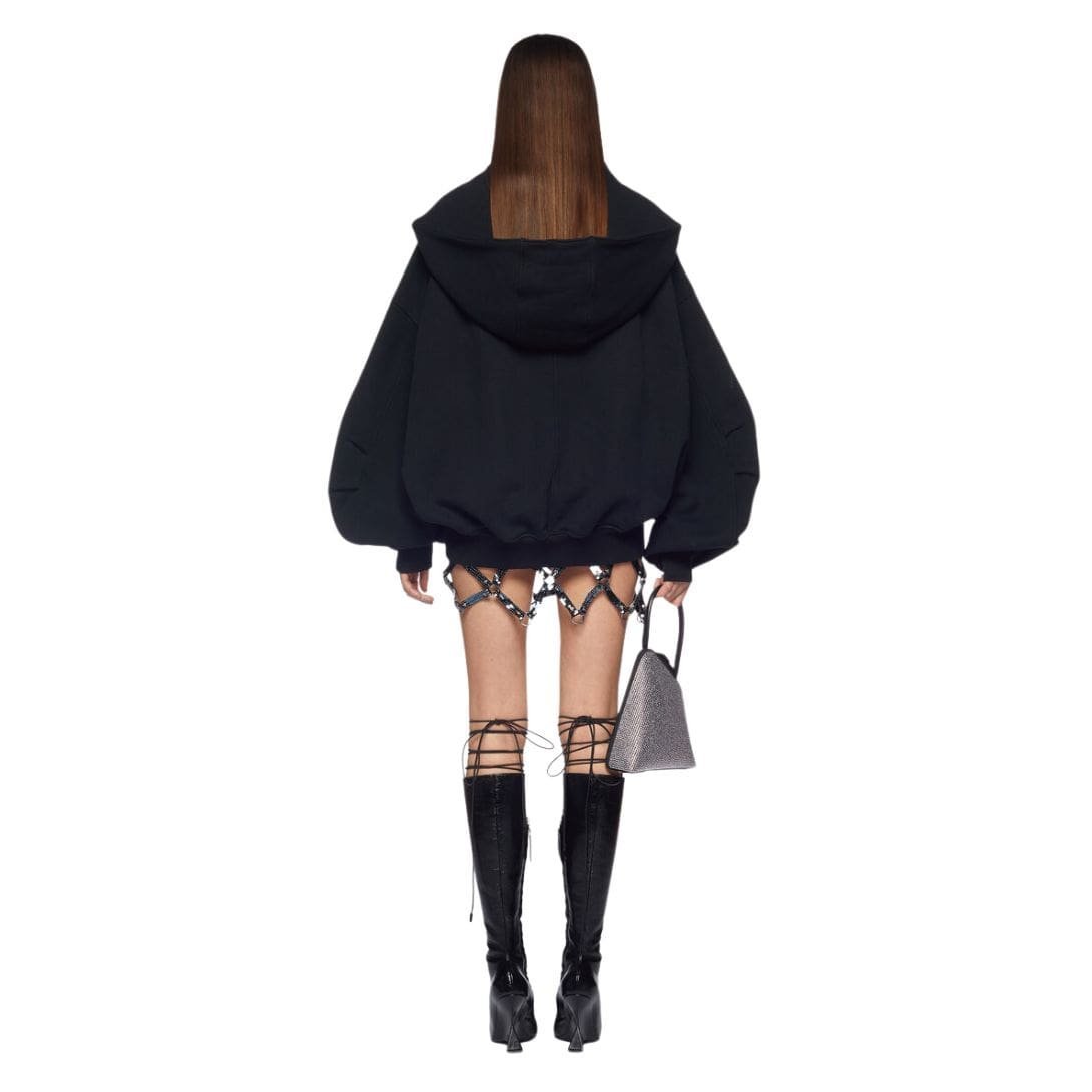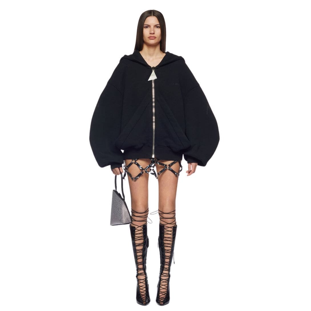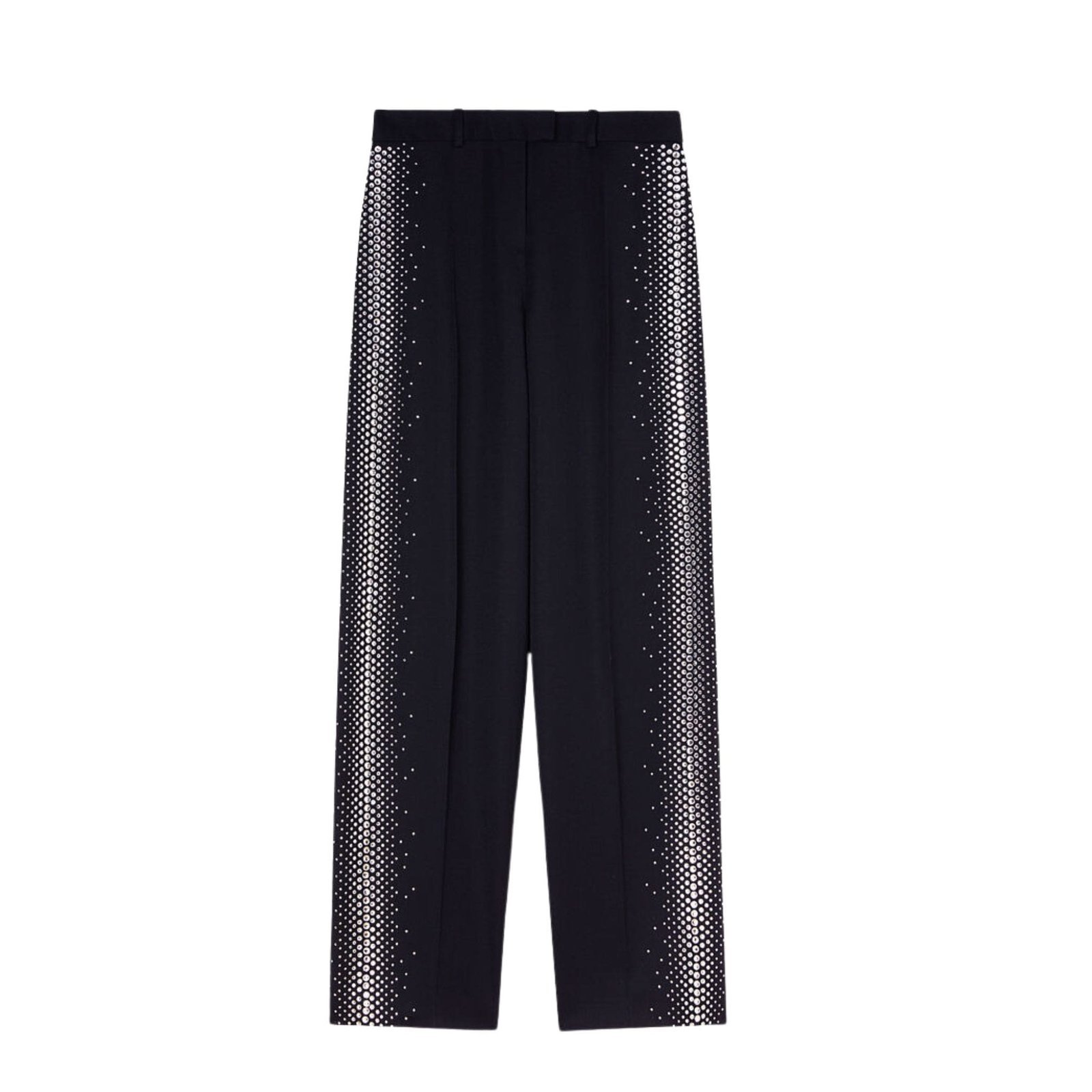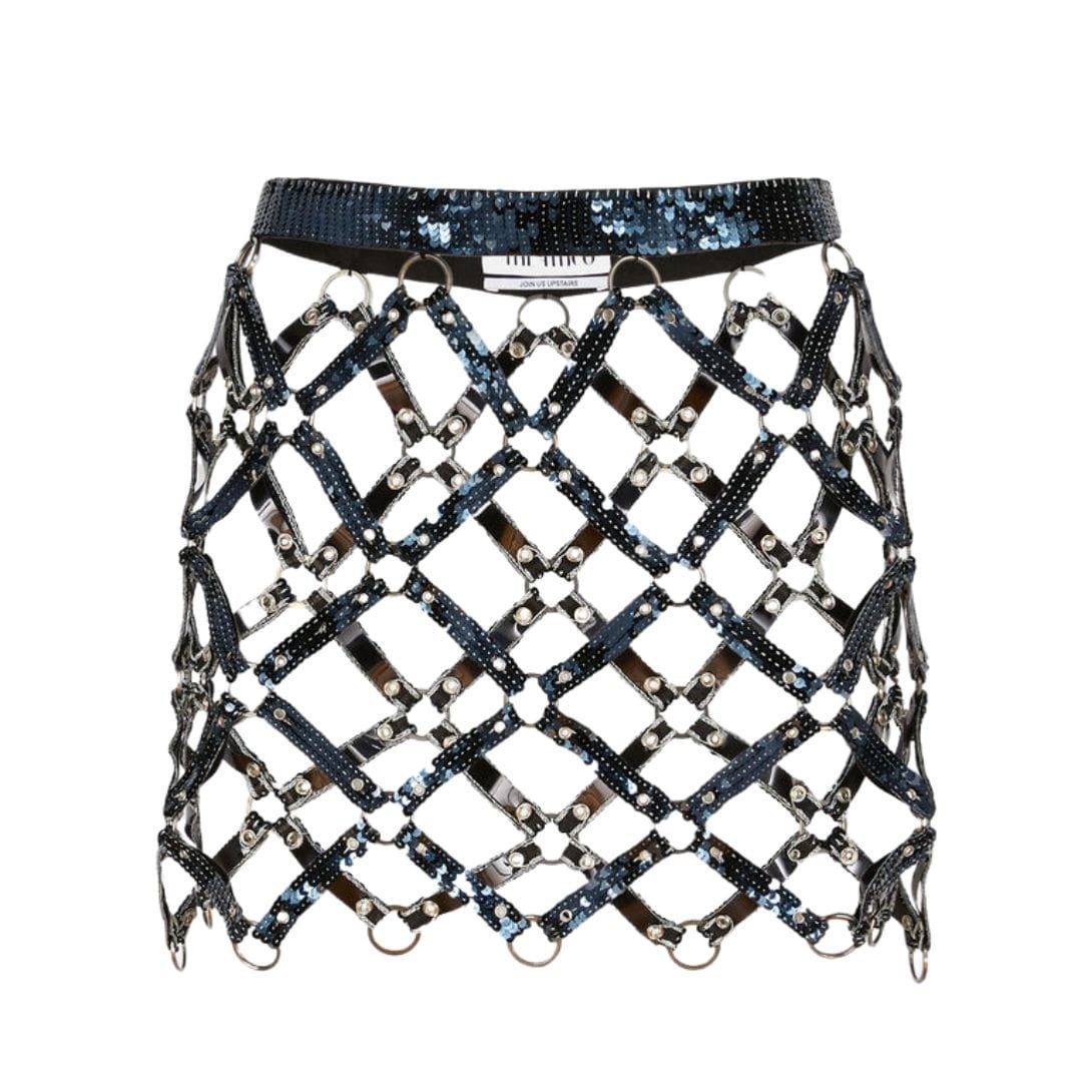 The attico navy blue midi skirt features navy blue sequin mesh adorned with metal rings. Made in Italy.