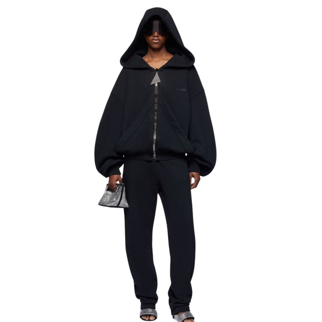 The attico penny black fade long pants are made from black fade diagonal fleece and feature a thick rubberized black logo print.