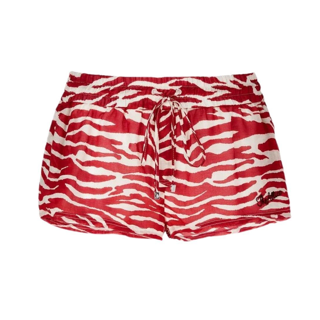 The Attico Red and Milk Short Pants are adorned with a striking red and milk zebra print and feature side pockets, a drawstring waist with logo metal ends, and an embroidered logo. Made in Italy.