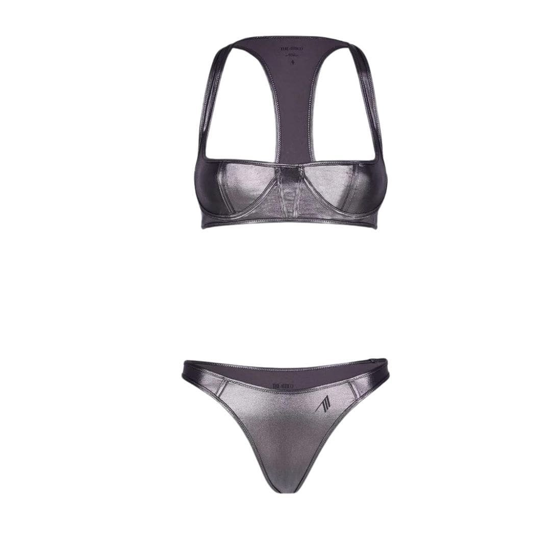 The Attico Violet Bikini Wet Effect Lycra with Halter Neckline, High-Waisted Slip, Back Opening, and Logo Metal Ends – Made in Italy