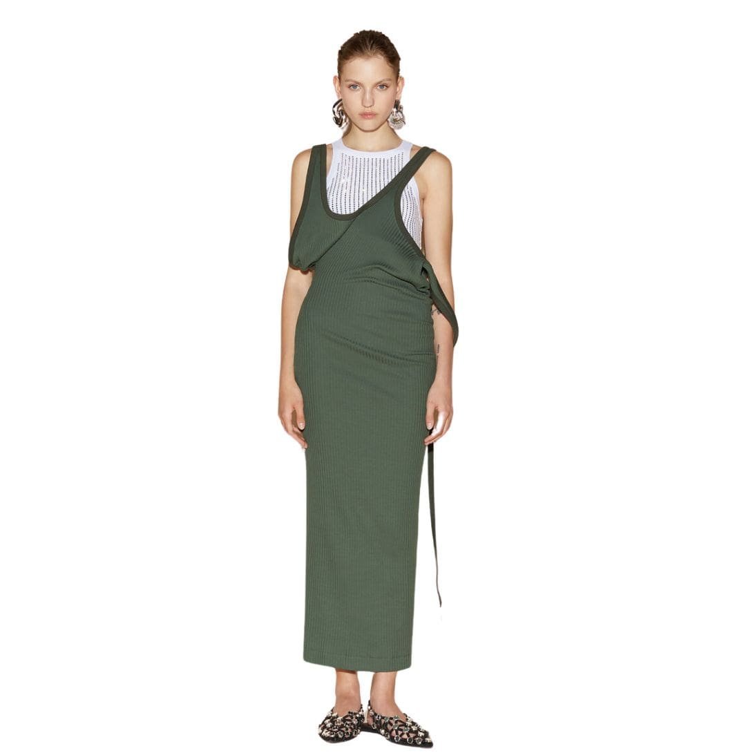 The Attico White Midi Dress in white ribbed jersey with draped asymmetrical neckline. Crafted in Italy.