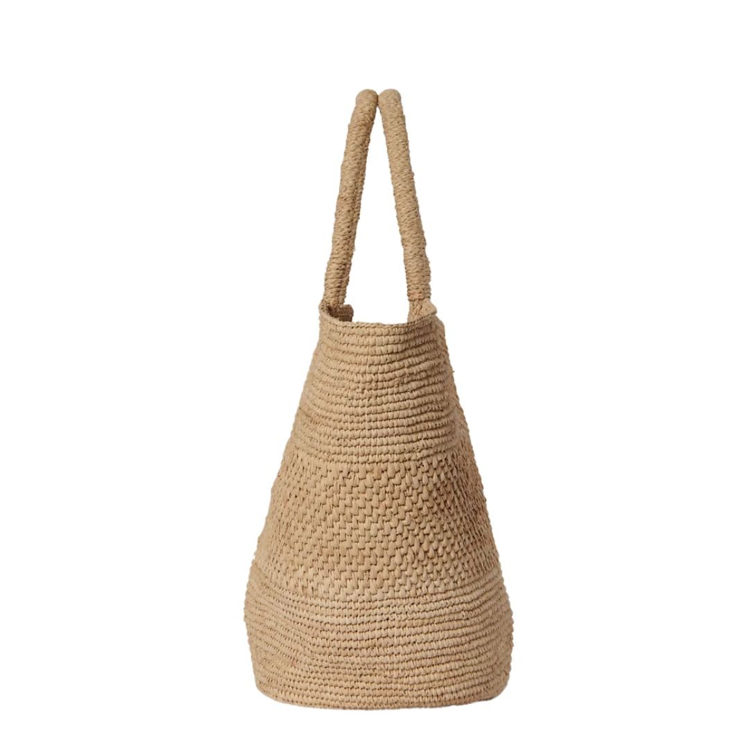 Meticulously crafted in Italy, the Emilie Handbag is made from 100% natural raffia, offering an organic, breathable texture that reflects a commitment to high-quality materials and sustainable sensibility. The handwoven construction showcases exceptional attention to detail, resulting in a dimensional surface that feels both sculptural and effortless.
