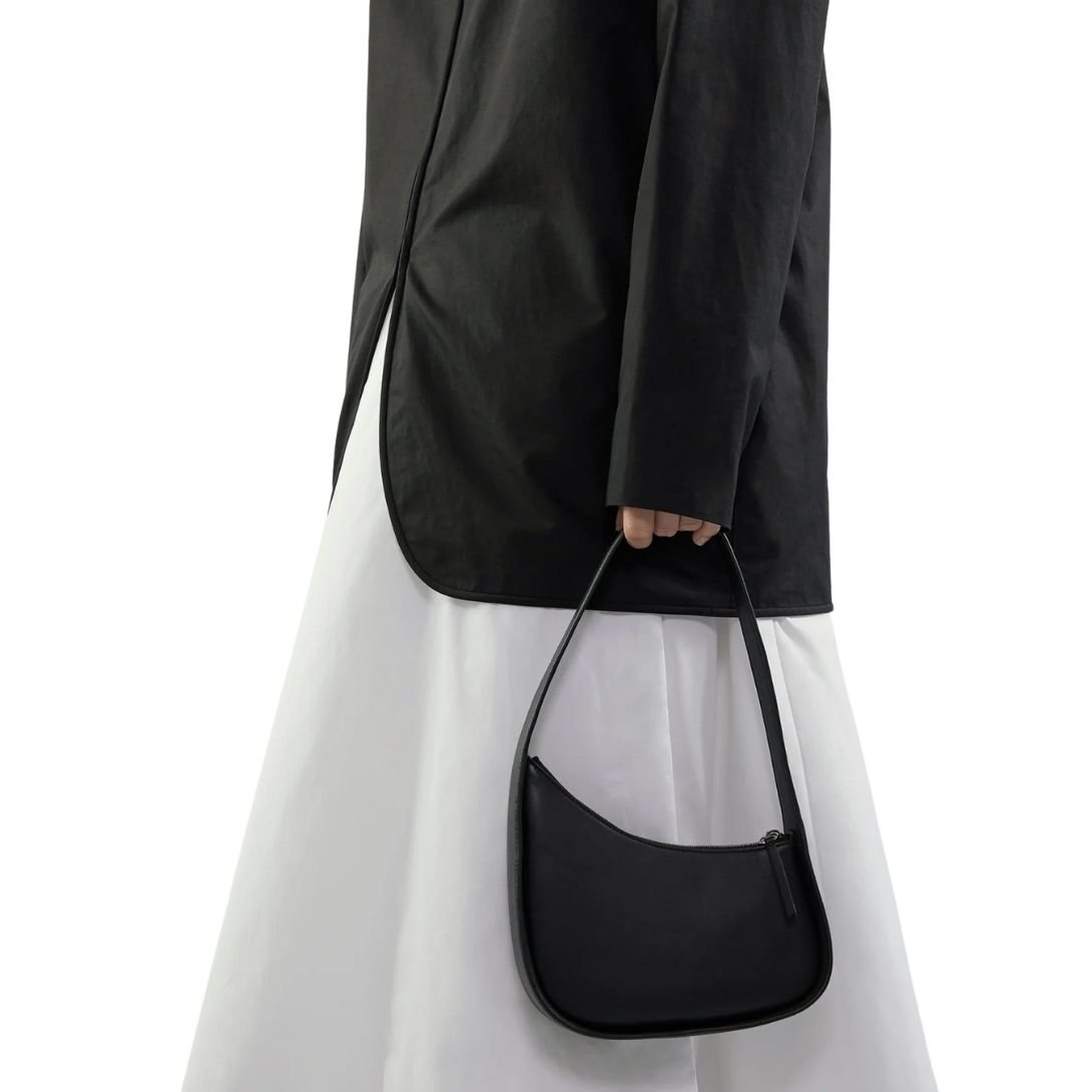 Minimal yet distinctive, The Row’s Half Moon Shoulder Bag is a sophisticated choice for the modern woman. Its neutral palette and iconic silhouette make it a go-to accessory for effortlessly polished looks, transcending trends with timeless appeal and refined functionality.