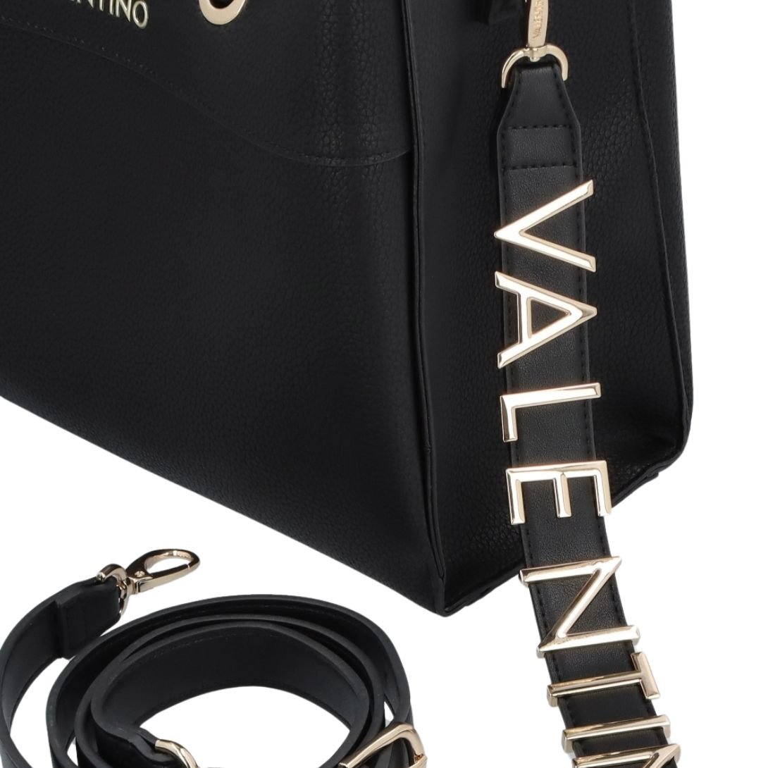 VALENTINO BAGS ALEXIA BLACK LOGO STRAP TOTE BAG
