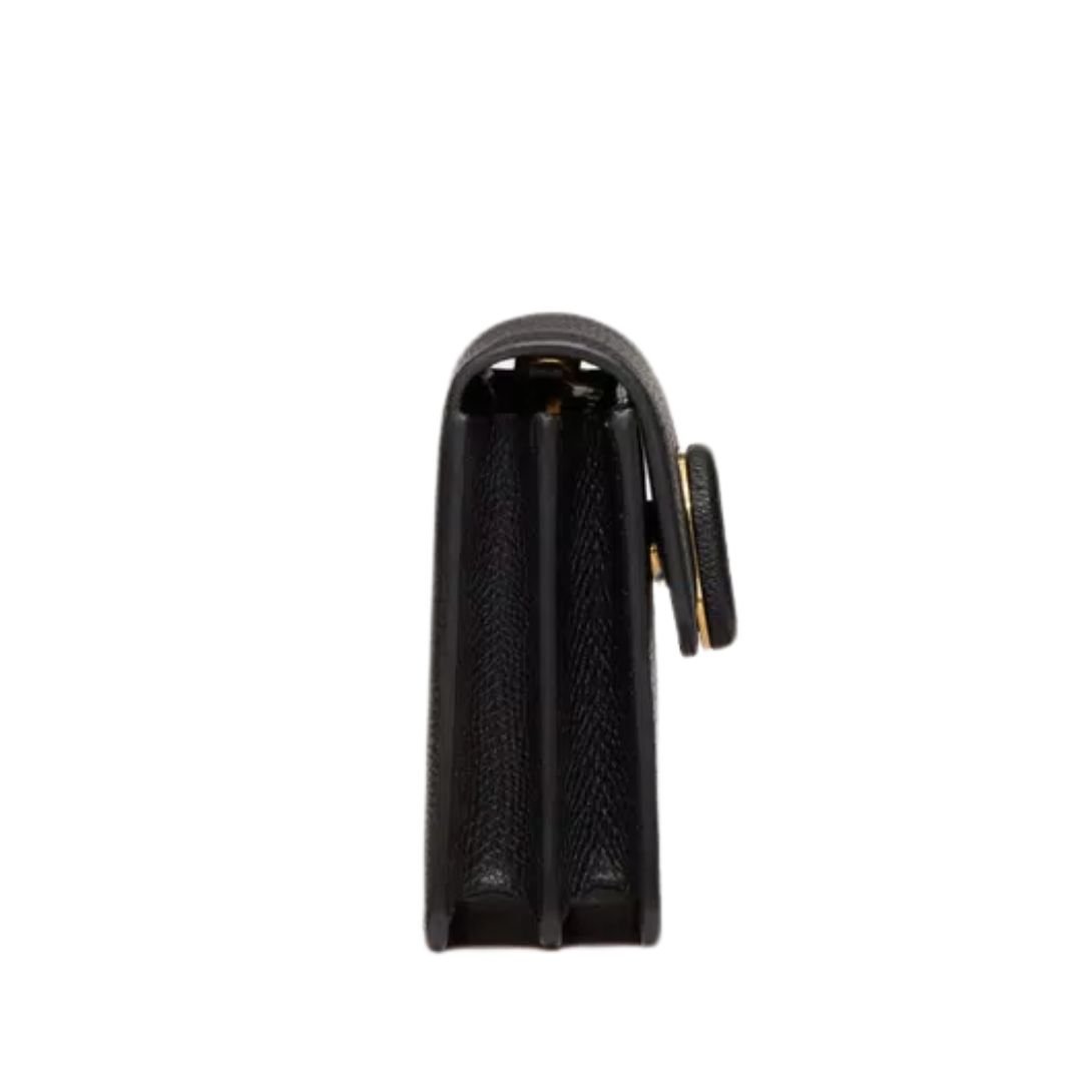 A seamless blend of elegance and utility, this Valentino Garavani wallet with chain is crafted from premium grainy calfskin and defined by the leather–covered VLogo Signature magnetic closure. The rich texture and antique brass-finish hardware lend timeless sophistication, while the thoughtful interior offers modern convenience.