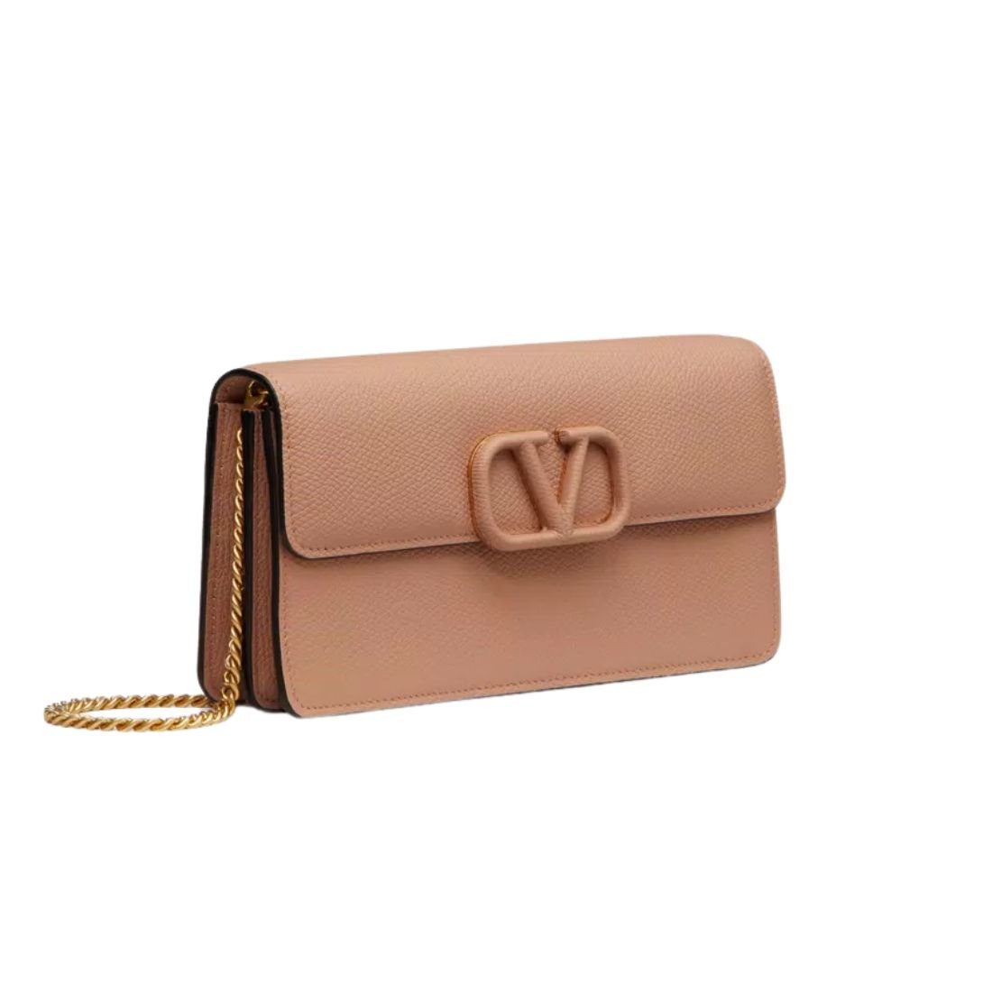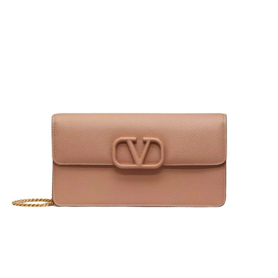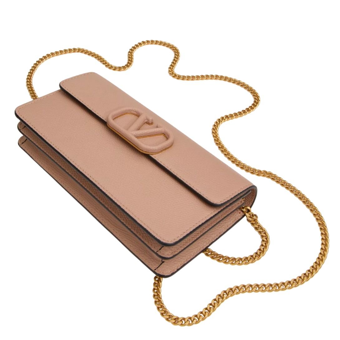 VALENTINO GARAVANI LEATHER WALLET ON CHAIN ROSE CANNELLE