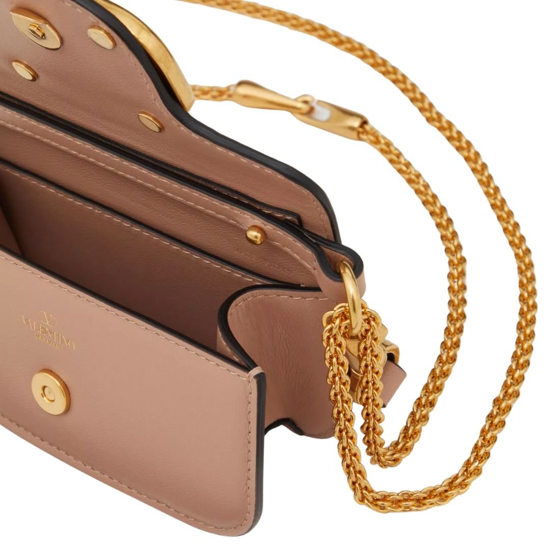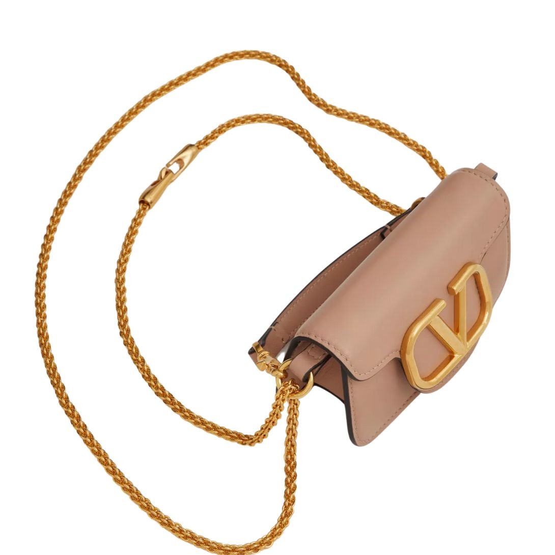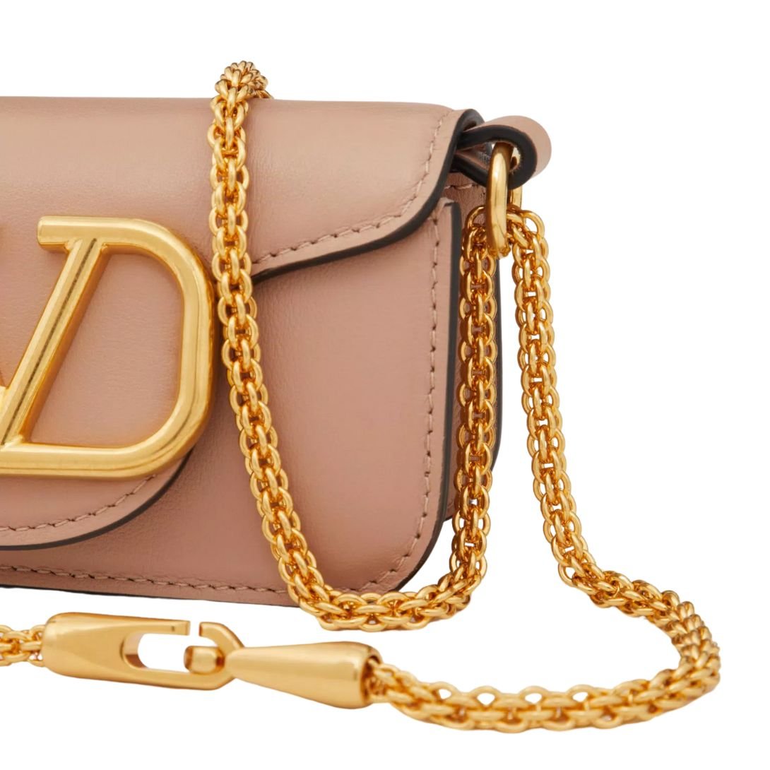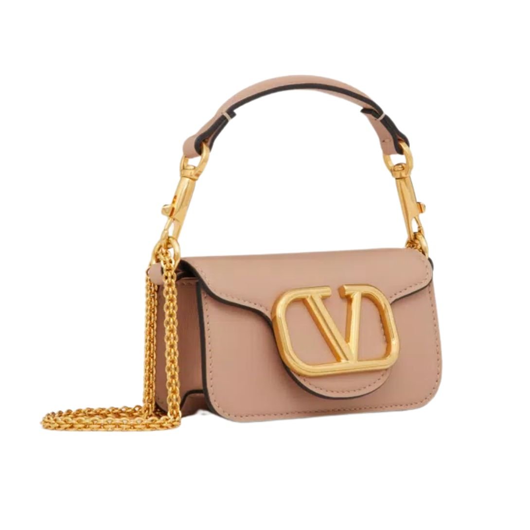 Chic, compact, and unmistakably Valentino—meet the Locò Micro Bag, a modern icon reimagined in smooth calfskin leather and adorned with the VLogo Signature metallic emblem. Finished with antique-brass hardware, this exquisitely crafted accessory transitions effortlessly from day to night.