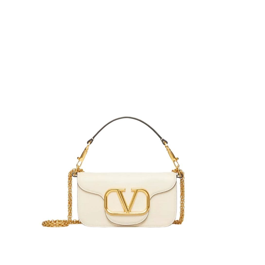 Introducing the Valentino Garavani Locò small shoulder bag in calfskin, meticulously crafted from supple calfskin leather and adorned with the signature VLogo metallic element. Versatile and elegant, this accessory boasts a detachable sliding chain strap and a removable handle, allowing it to effortlessly transition from a crossbody or shoulder bag to a handbag.