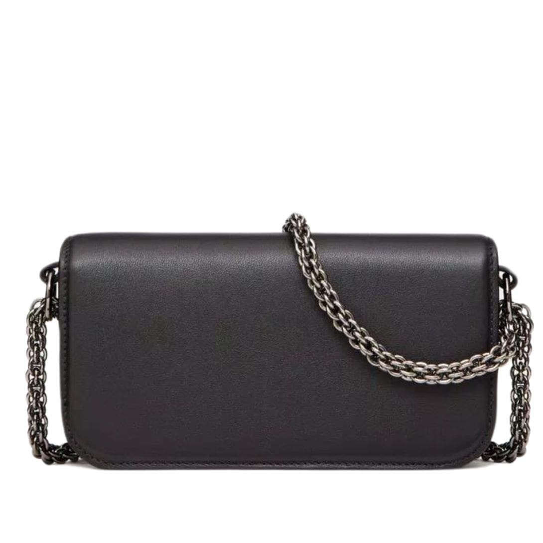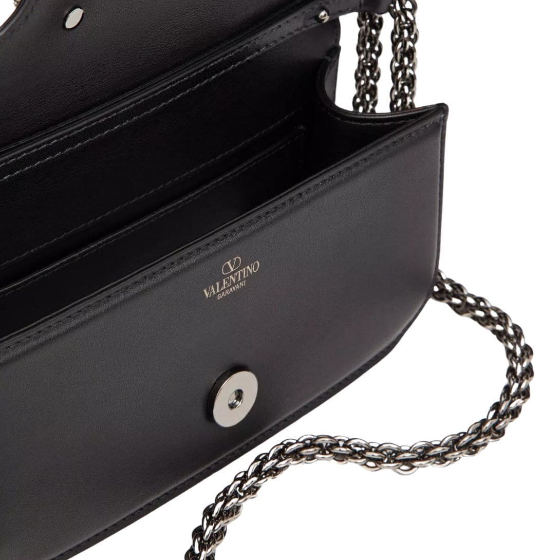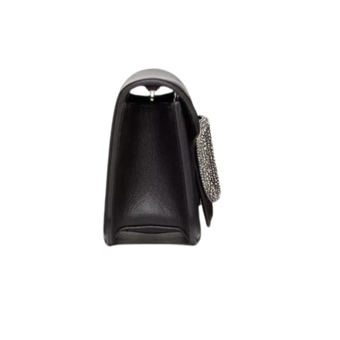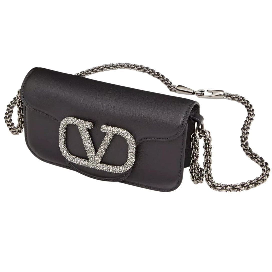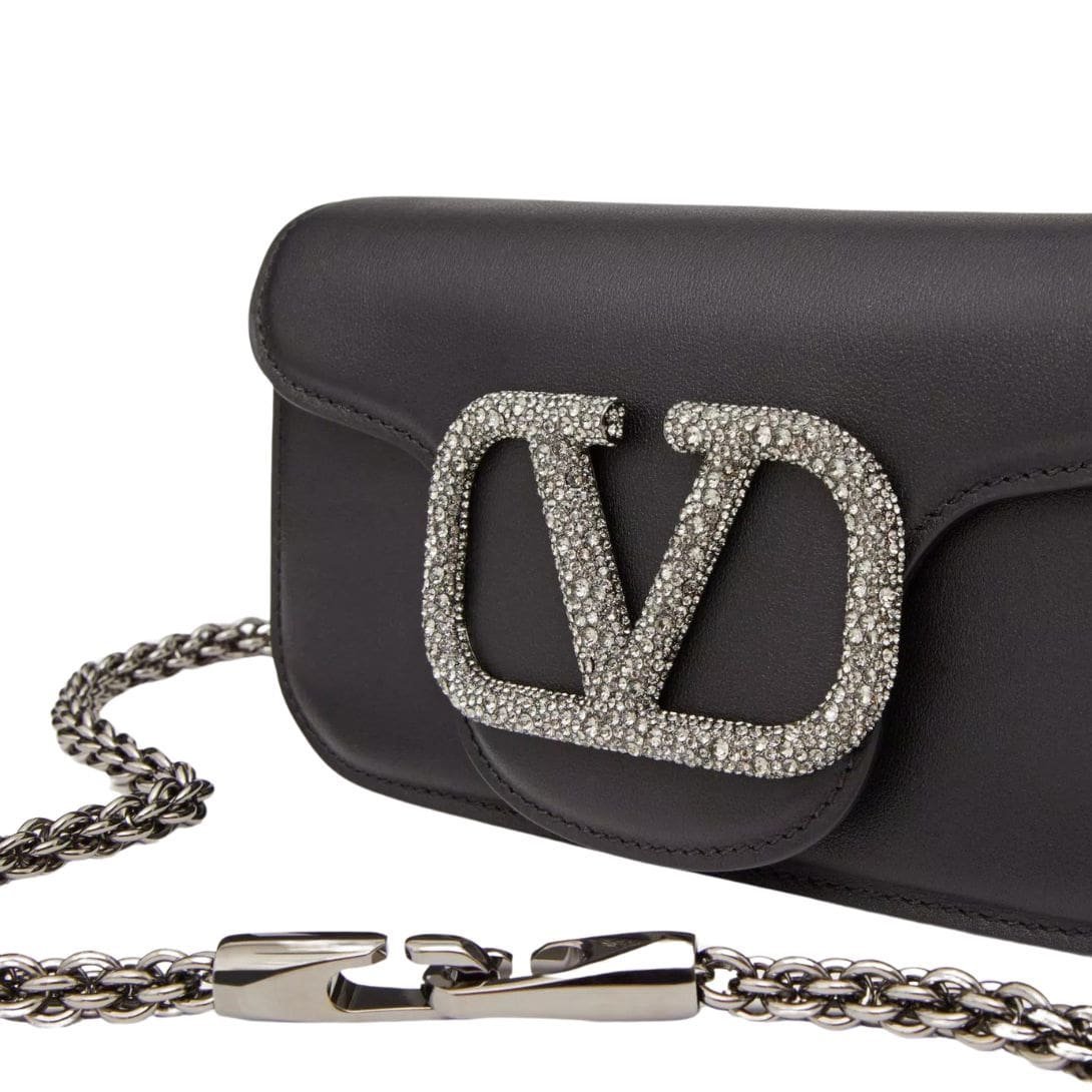 Design: Crafted in luxurious calfskin, this small shoulder bag boasts the iconic VLogo Signature element adorned with shimmering Swarovski® crystals, adding a touch of glamour to any ensemble. The ruthenium-finish hardware enhances its elegant appeal.