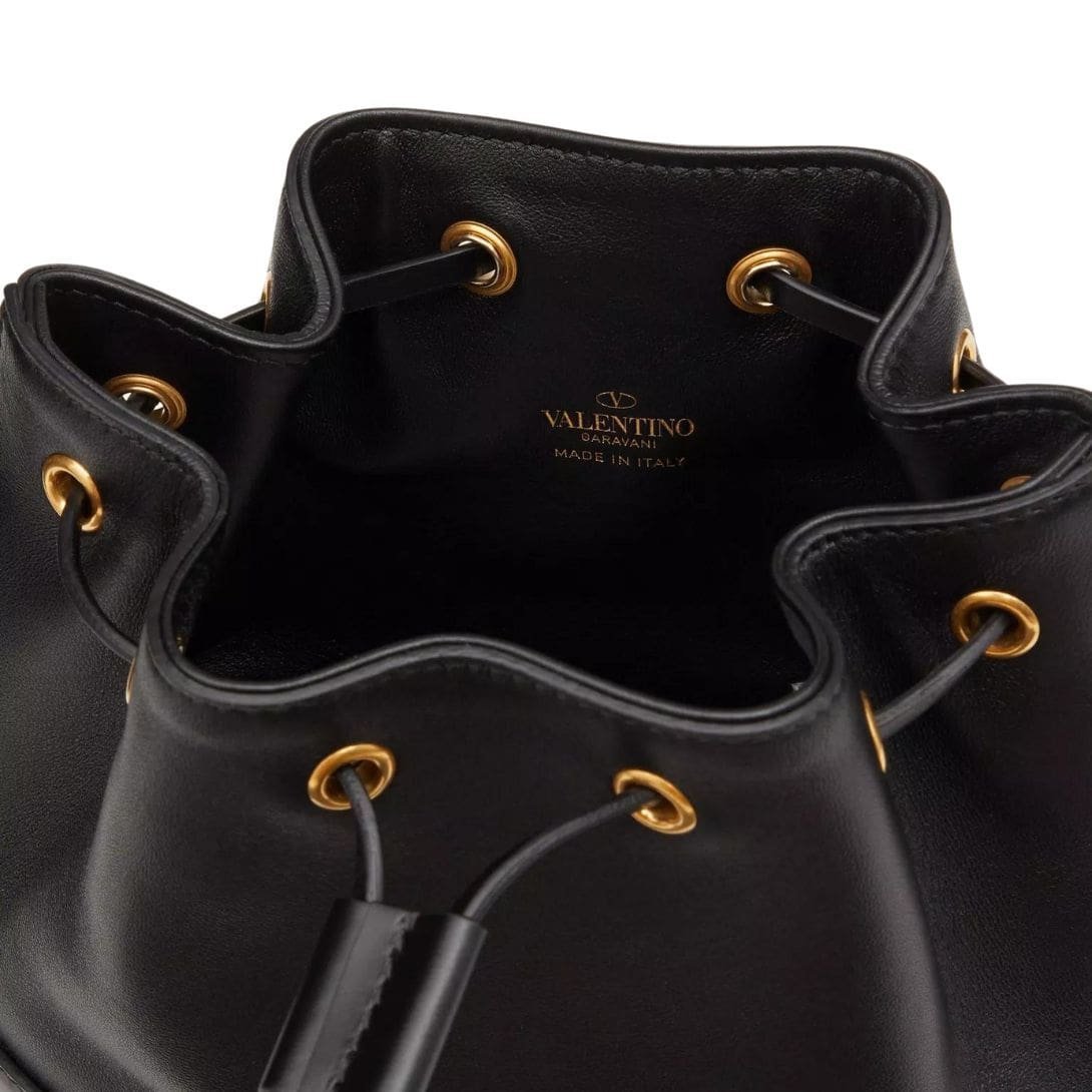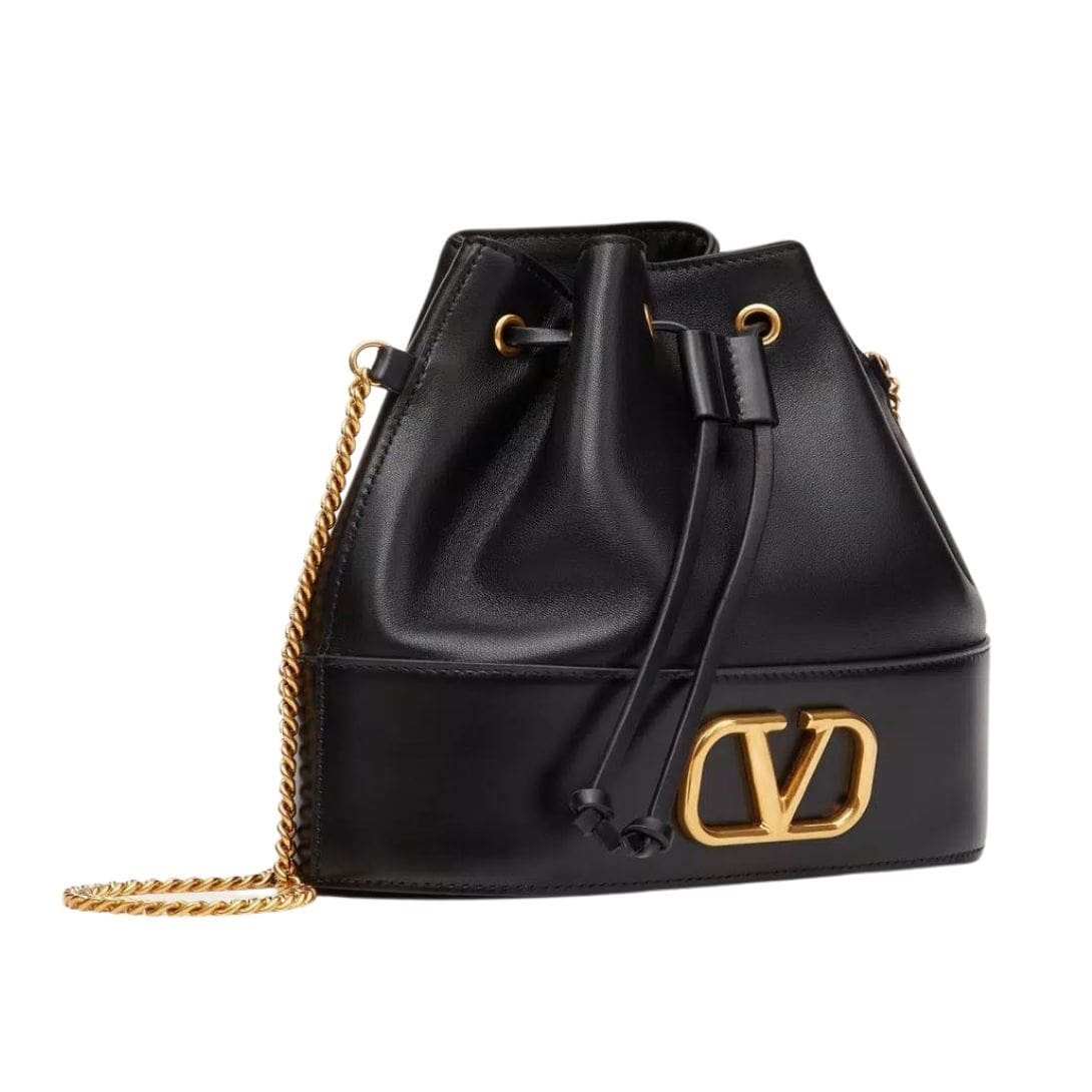 Introducing valentino garavani mini bucket bag in nappa with vlogo signature chain.