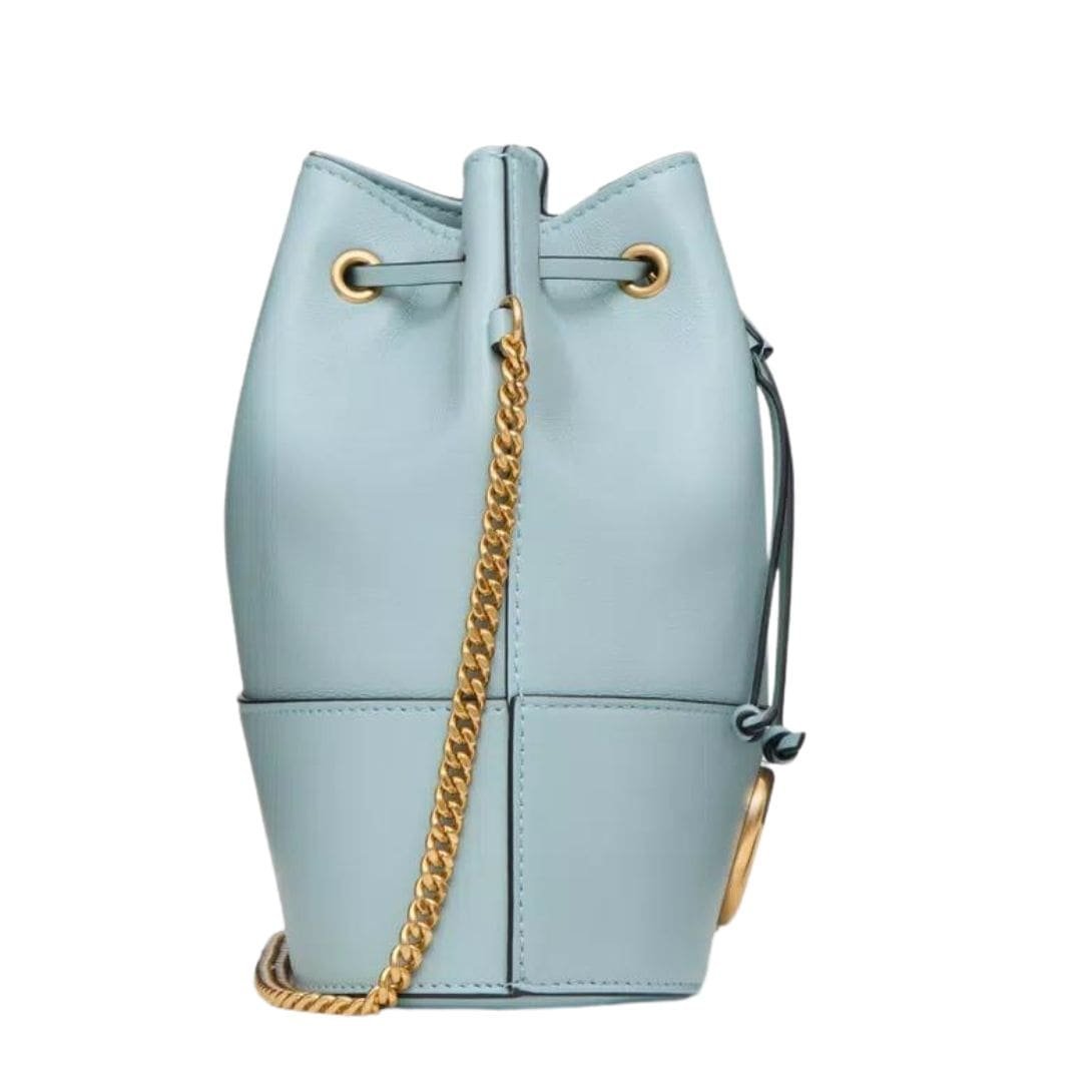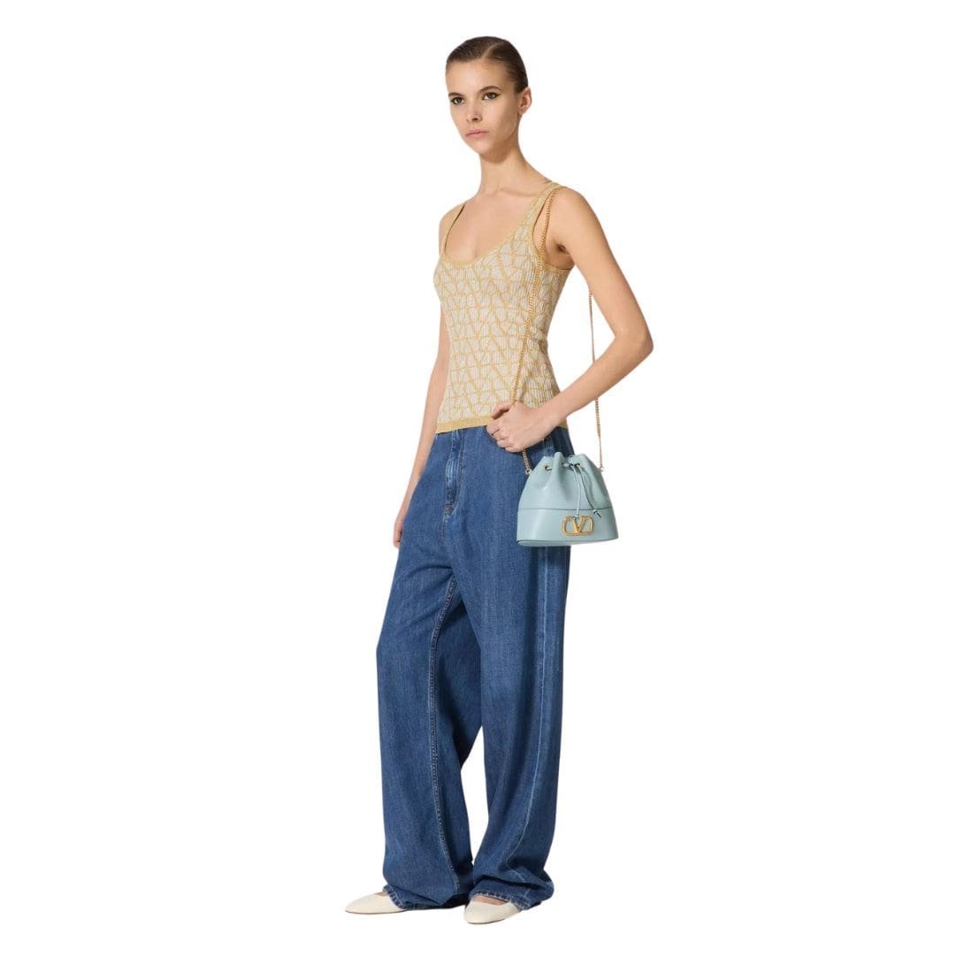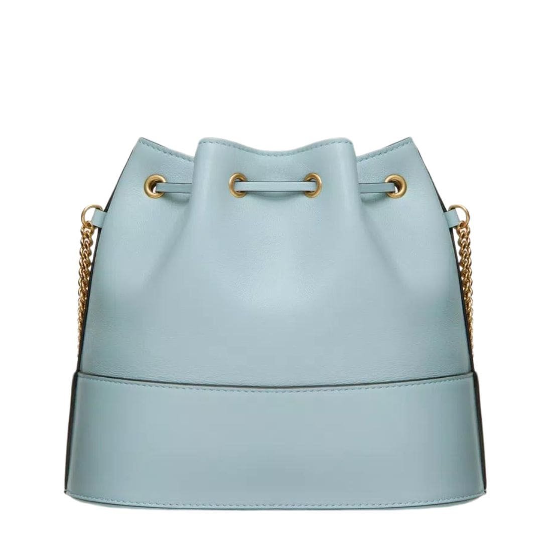 Introducing valentino garavani mini bucket bag in nappa with vlogo signature chain.