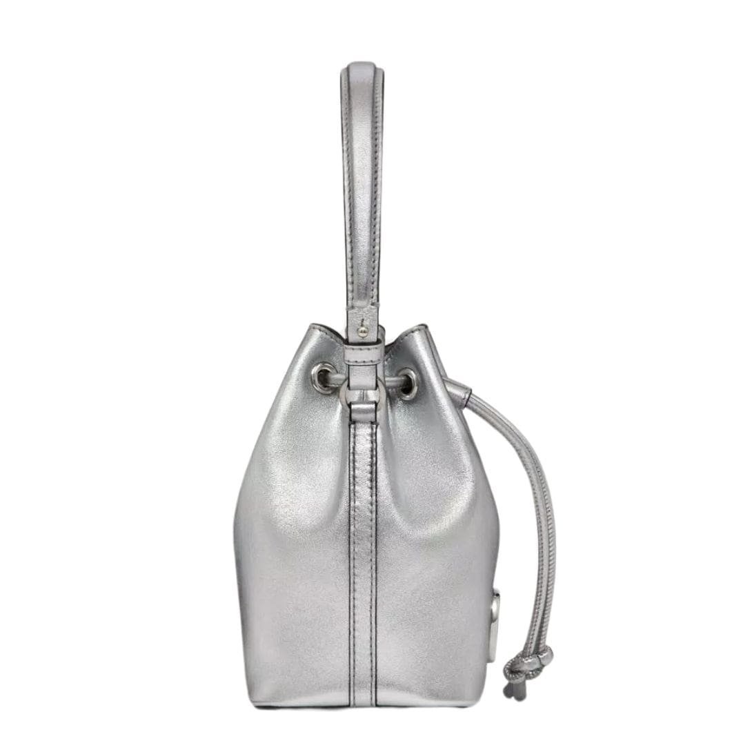 VALENTINO GARAVANI MINI VLOGO SIGNATURE BUCKET BAG IN METALLIC NAPPA LEATHER