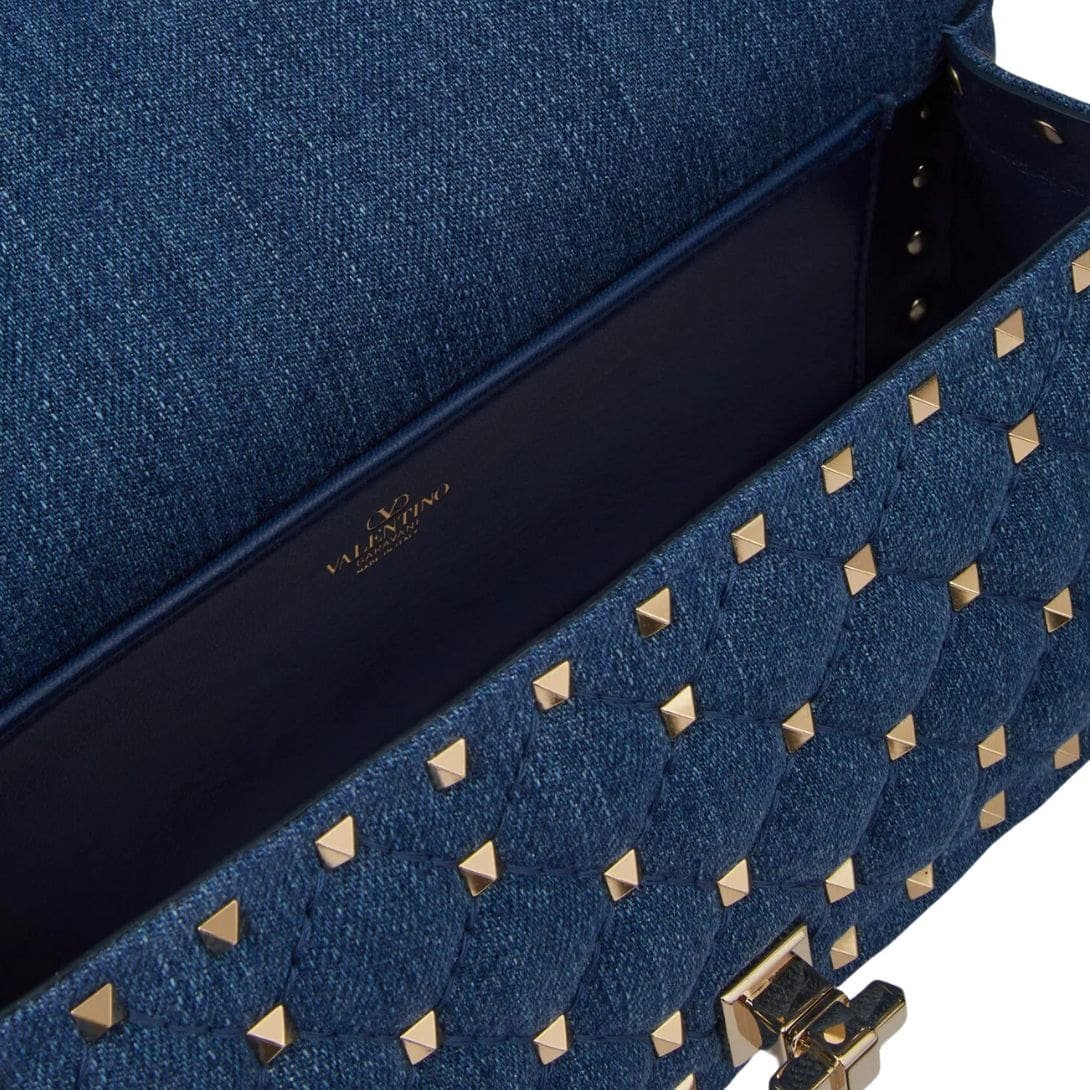 VALENTINO GARAVANI ROCKSTUD SPIKE DENIM SHOULDER BAG