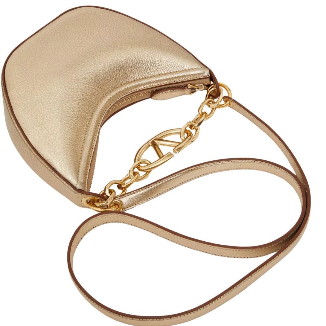 VALENTINO GARAVANI VLOGO MOON MINI HOBO BAG IN METALLIC CALFSKIN WITH CHAIN