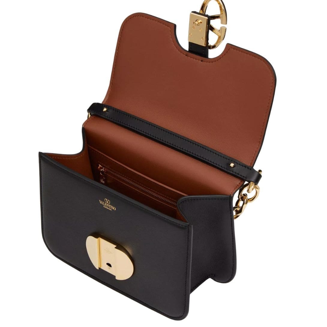 Introducing the Valentino Garavani VLogo O’Clock small nappa leather shoulder bag with chain, featuring a VLogo Signature clasp detail that elegantly opens the bag by turning the VLogo element clockwise. This versatile bag comes equipped with both a chain and a detachable leather shoulder strap, offering the flexibility to wear it as a crossbody/shoulder bag or carry it by hand.