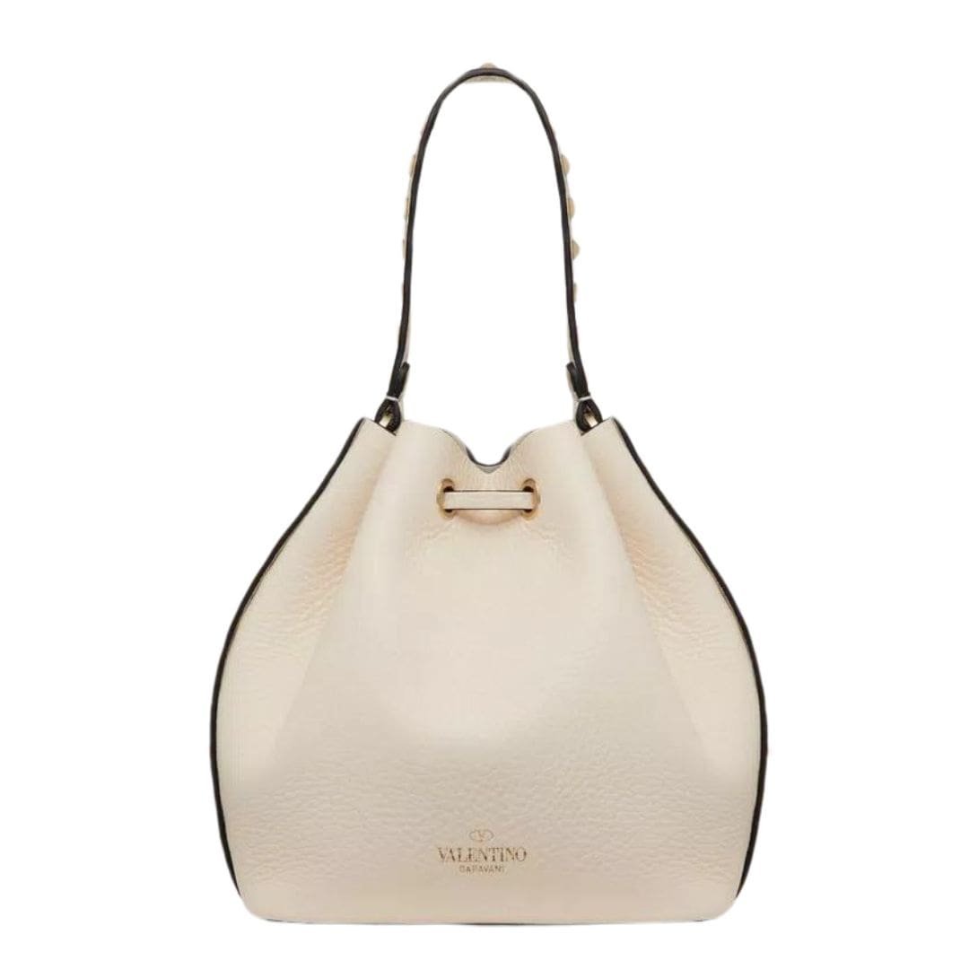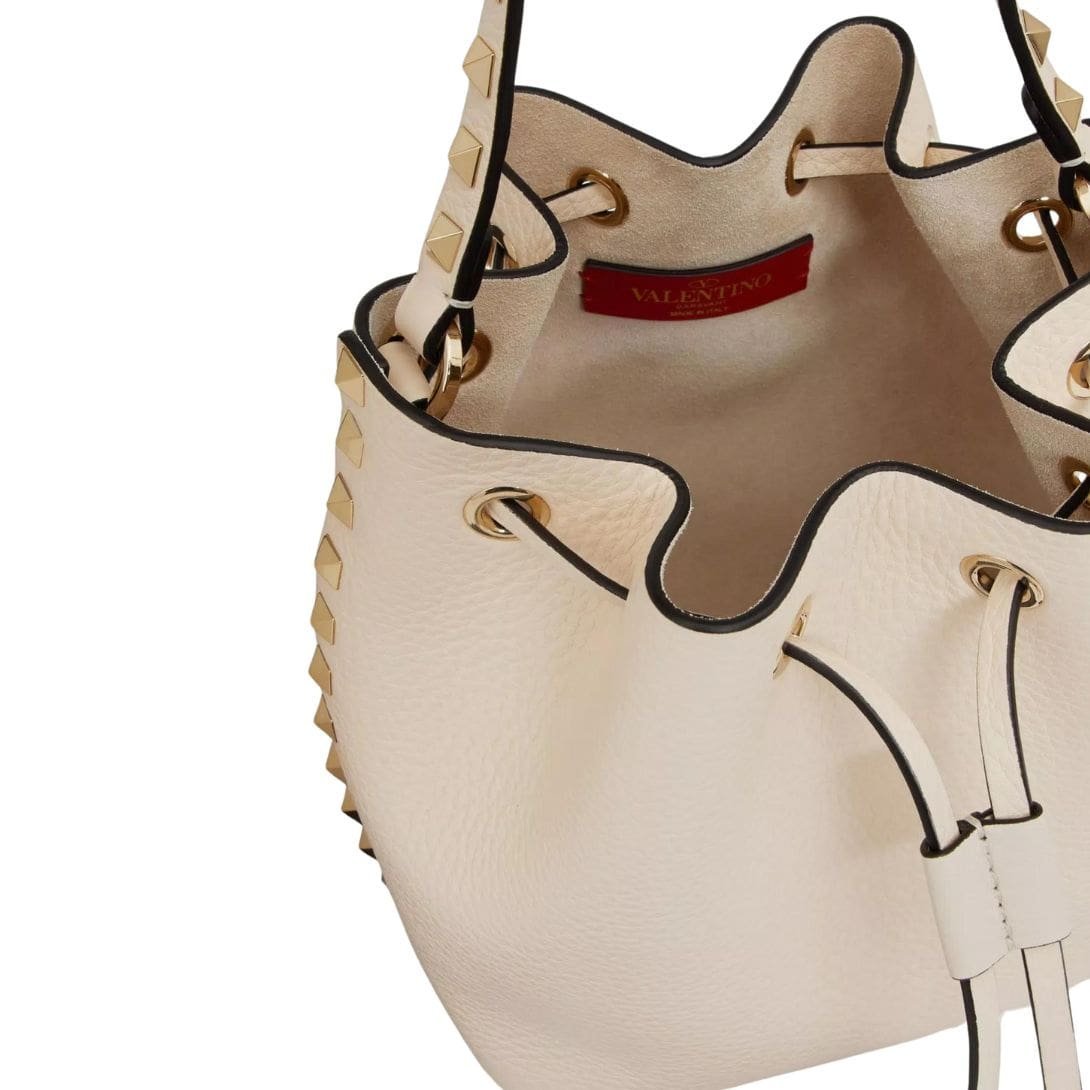 VALENTINO ROCKSTUD GRAINY CALFSKIN BUCKET BAG