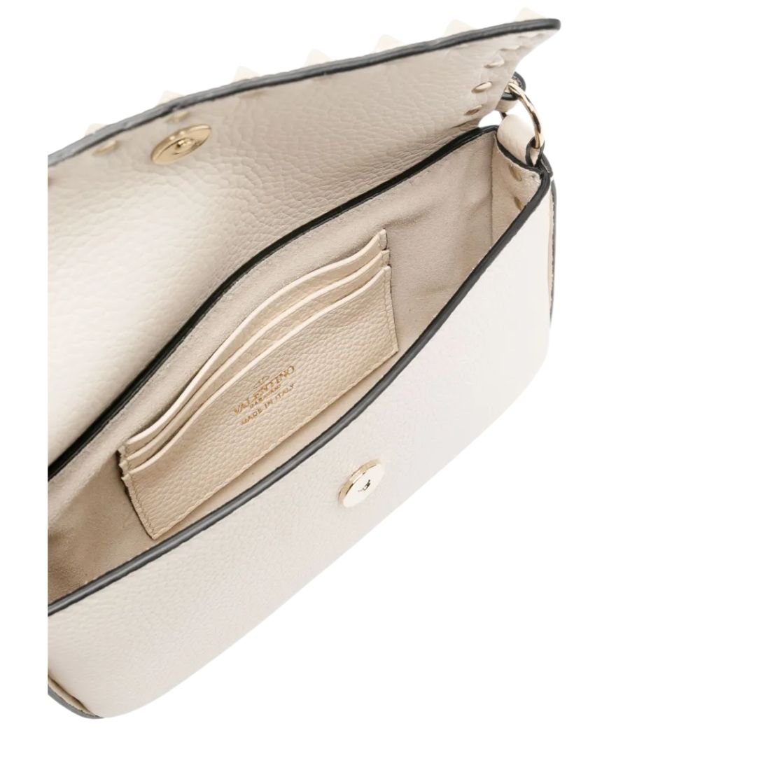 Expertly crafted in Italy from premium white leather, the bag showcases Valentino’s commitment to superior craftsmanship and timeless luxury. The sleek leather finish adds a touch of sophistication, making it an ideal choice for refined styling.