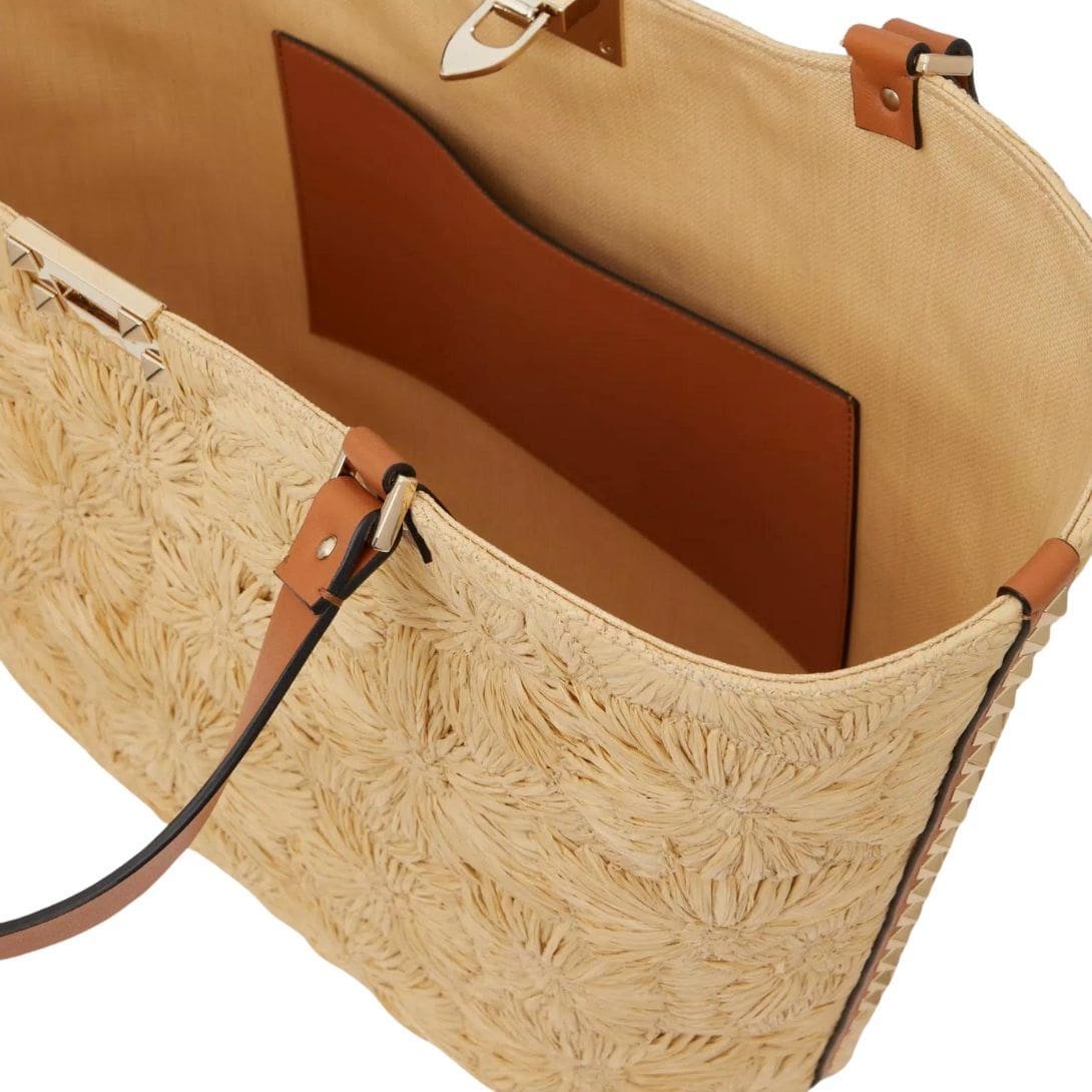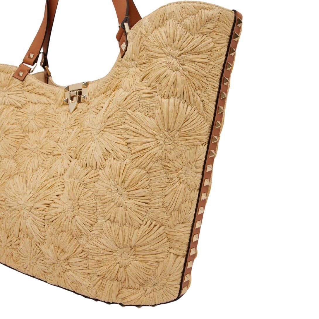 VALENTINO ROCKSTUD WOVEN RAFFIA SHOPPING BAG