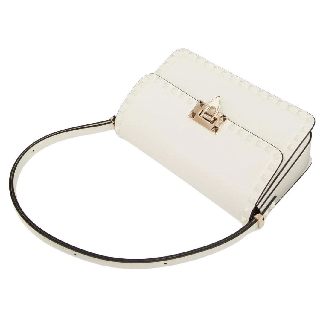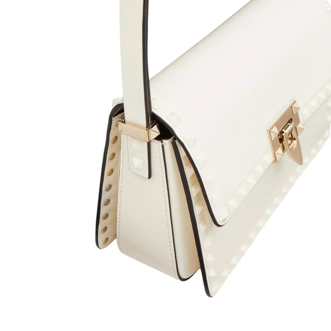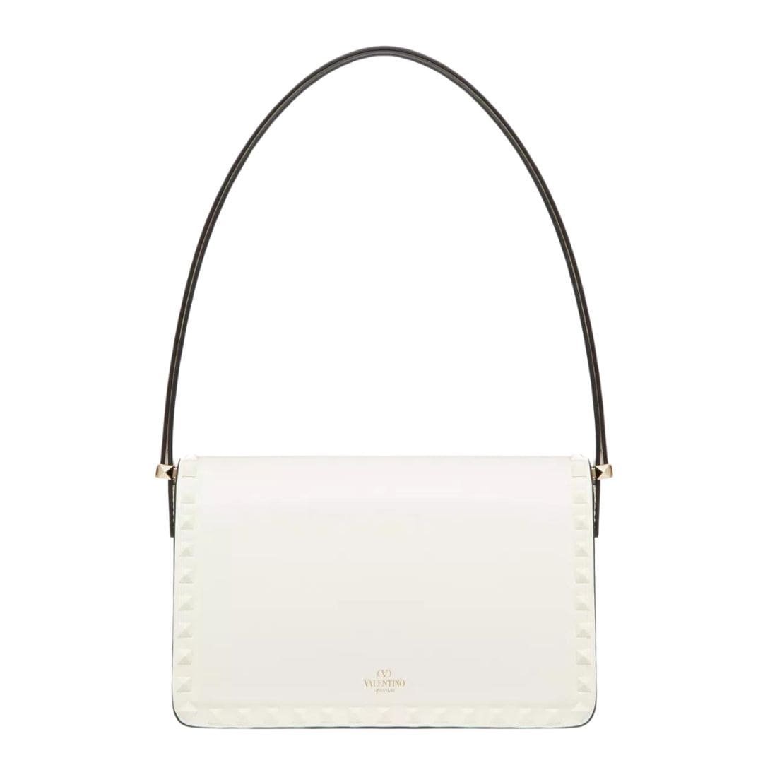 Introducing valentino rockstud23 smooth calfskin shoulder bag, the Valentino Garavani Rockstud23 shoulder bag, meticulously crafted from smooth calfskin and adorned with subtle tone-on-tone enameled stud trim.