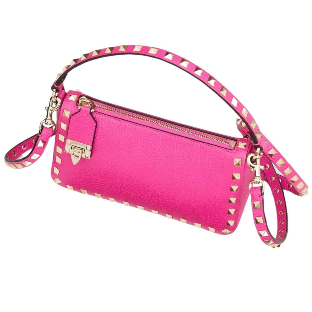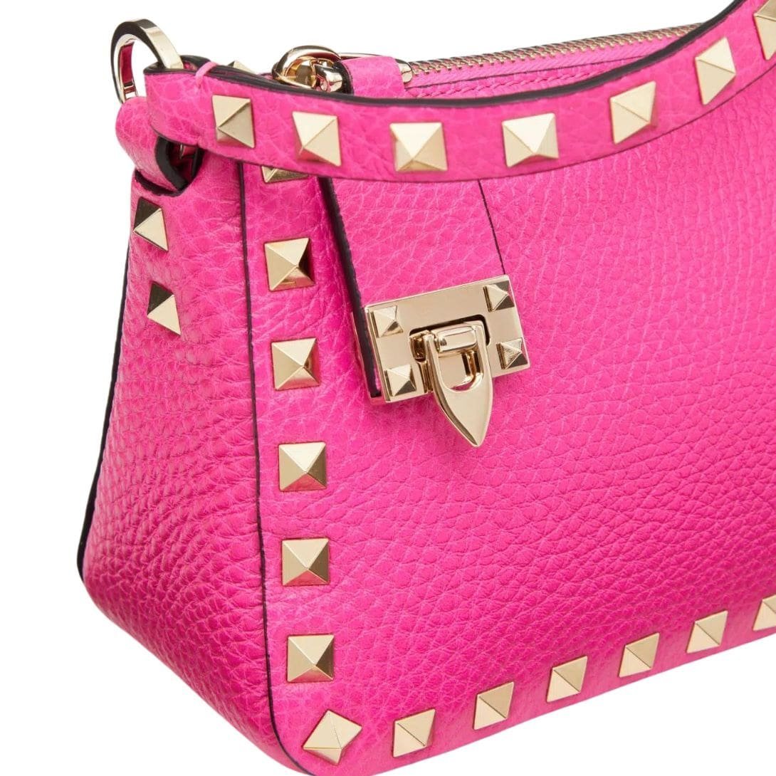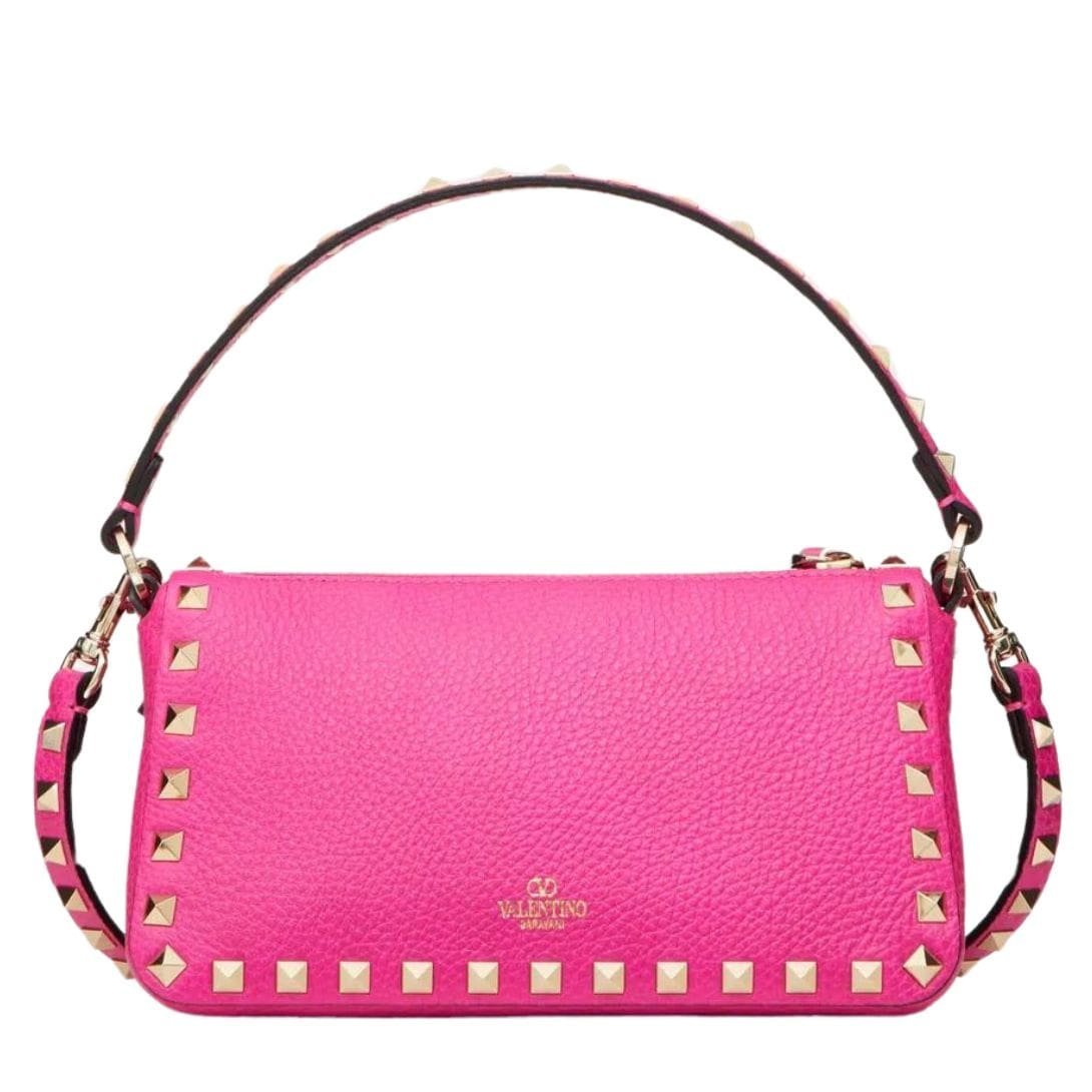 The valentino small rockstud grainy calfskin crossbody bag. This small valentino garavani rockstud crossbody bag in grainy calfskin leather, iconic hook closure is reinterpreted to secure the zip pull.