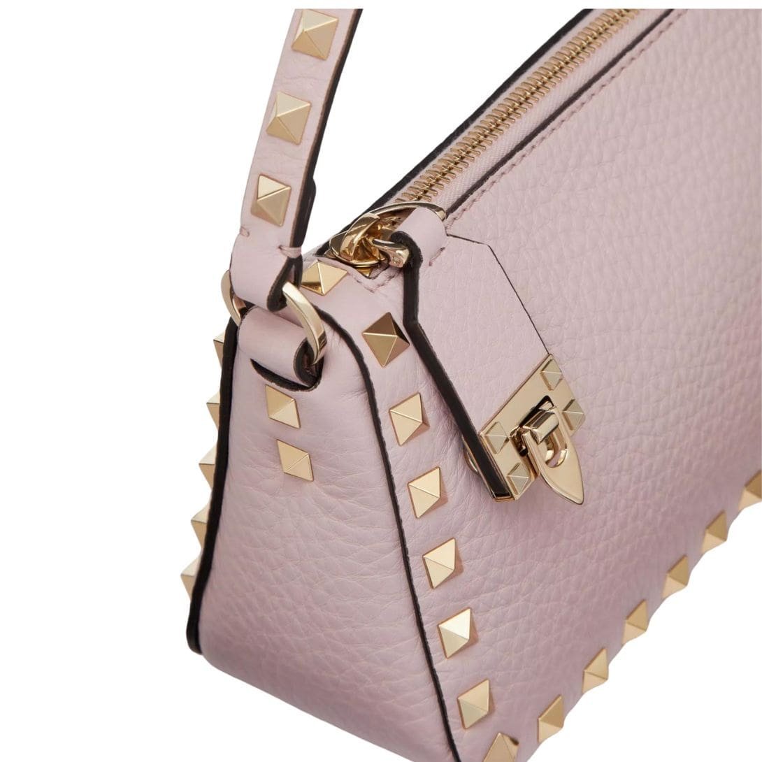 The valentino small rockstud grainy calfskin crossbody bag. This small valentino garavani rockstud crossbody bag in grainy calfskin leather, iconic hook closure is reinterpreted to secure the zip pull.