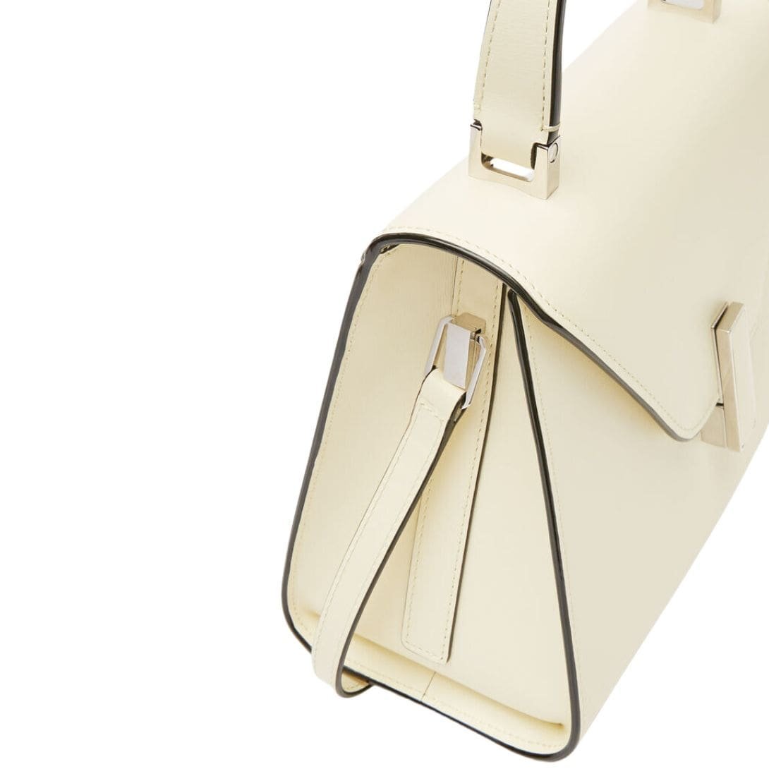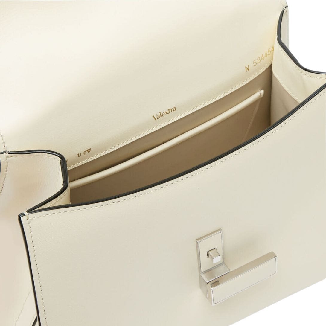 Introducing the VALEXTRA Iside palmellato top handle Mini bag , crafted in our finest leather yet. Named Palmellato after its meticulously hand-finished surface, it boasts an unbelievably soft texture and rich color depth that truly comes to life during assembly. This icon of urban elegance, presented in timeless Valextra WHITE, exudes a perpetual modernity with its graceful silhouette and comfortable top handle. Its intuitive capacity is complemented by the meticulous detail of black lacquered Costa edging, ensuring a blend of timeless sophistication and contemporary allure.