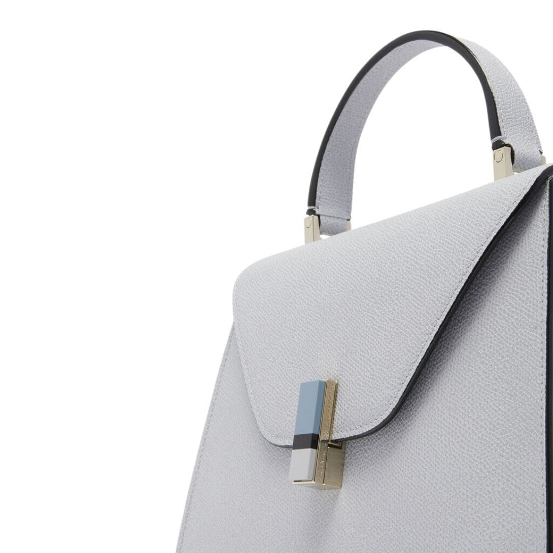 Reflecting Valextra’s commitment to urban craftsmanship, the Valextra Iside Plexi top handle Medium bag offers a fresh perspective on one of our beloved icons with an architectural twist. Its standout features include a sleek gold-tone clasp with a striking black smoky blue and ash grey plexiglass insert, drawing attention to the multidimensional qualities of our signature Millepunte calf leather. This bold geometric pattern harmonizes beautifully with the stone grey hue, symbolizing both the sophistication and the vibrancy of our Milanese roots.