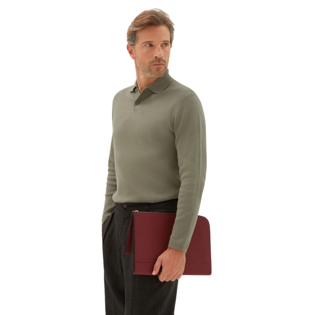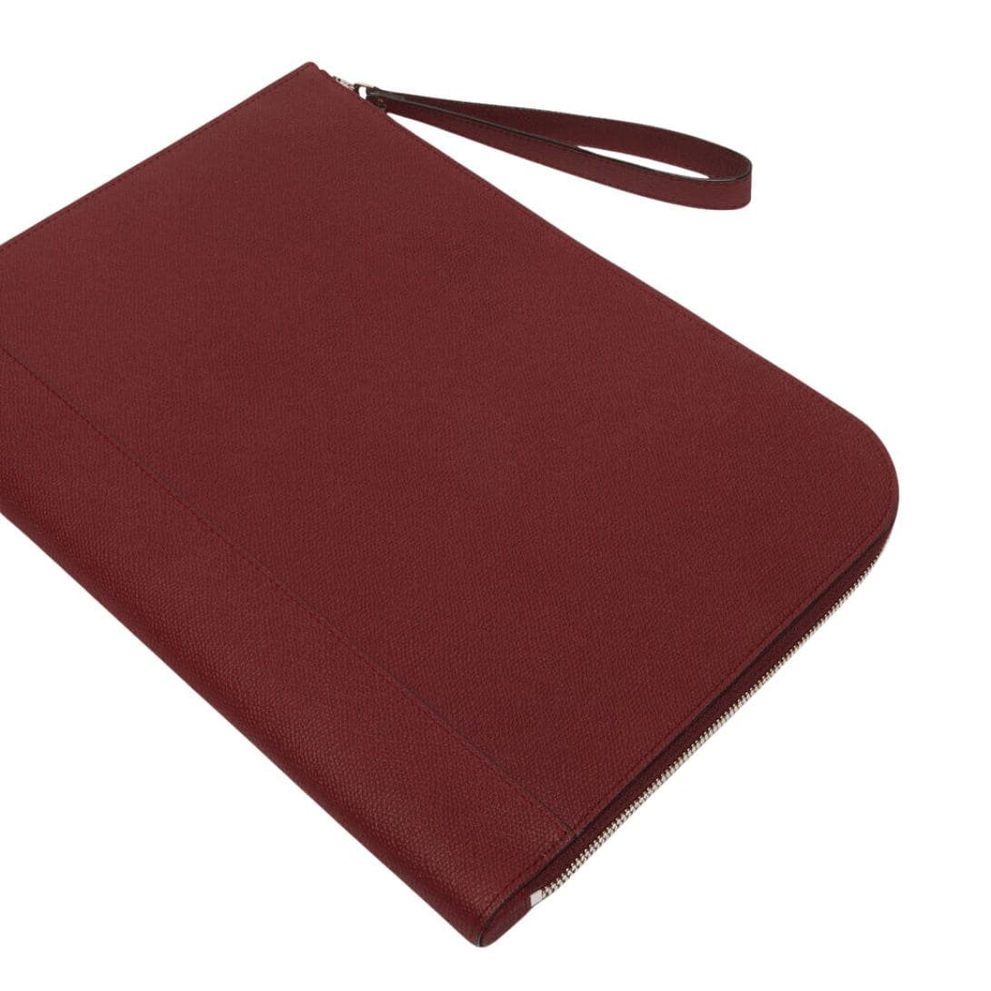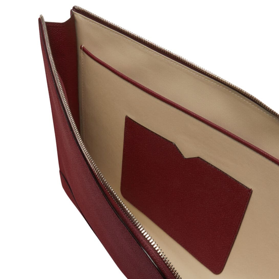 Designed to be your everyday essential, the Valextra My Logo Portfolio embodies both contemporary design and enduring sophistication. Crafted from our iconic Millepunte calf leather in the timeless Valextra BORDAUX shade, it seamlessly transitions between business and casual attire while adding a touch of refinement to your organization. Meticulously measured internal pockets accommodate documents and devices with precision, while a small card pocket featuring our signature V-cutout keeps business cards within easy reach.