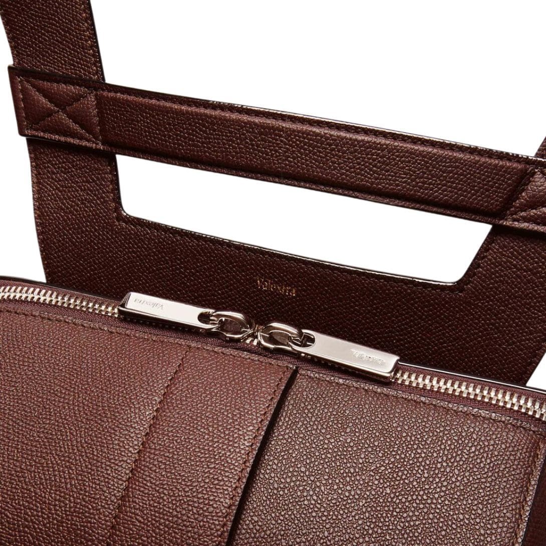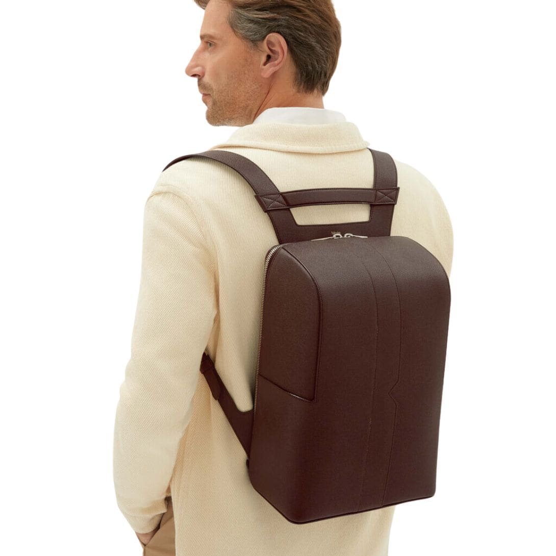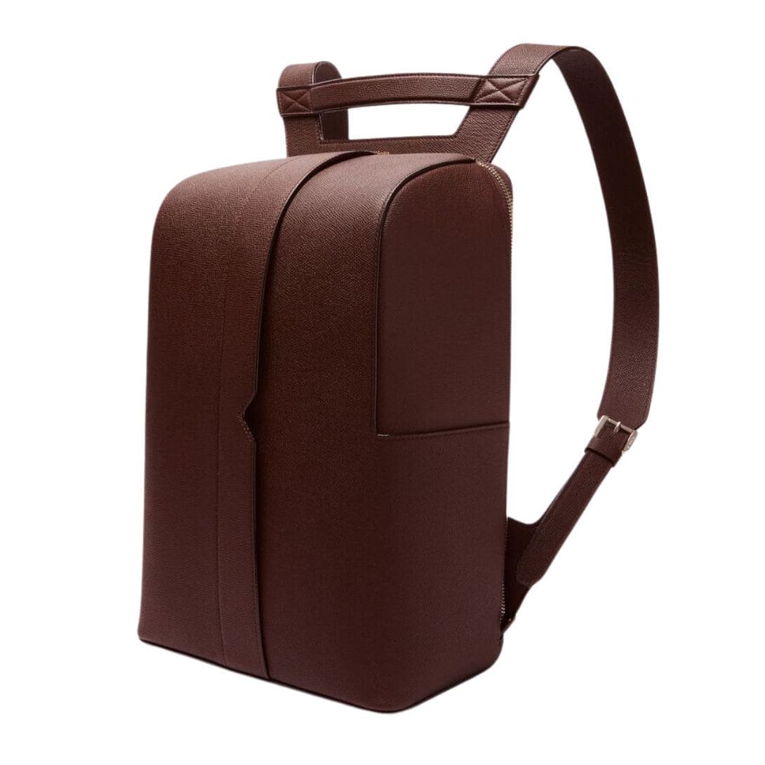 Drawing inspiration from Valextra’s iconic Tric Trac silhouette, the valextra V-Line Backpack in brown coffee Millepunte calf exemplifies the brand’s dedication to urban craftsmanship. Handcrafted for optimal comfort, it serves as a stylish and spacious travel companion, perfect for both holiday getaways and business trips.