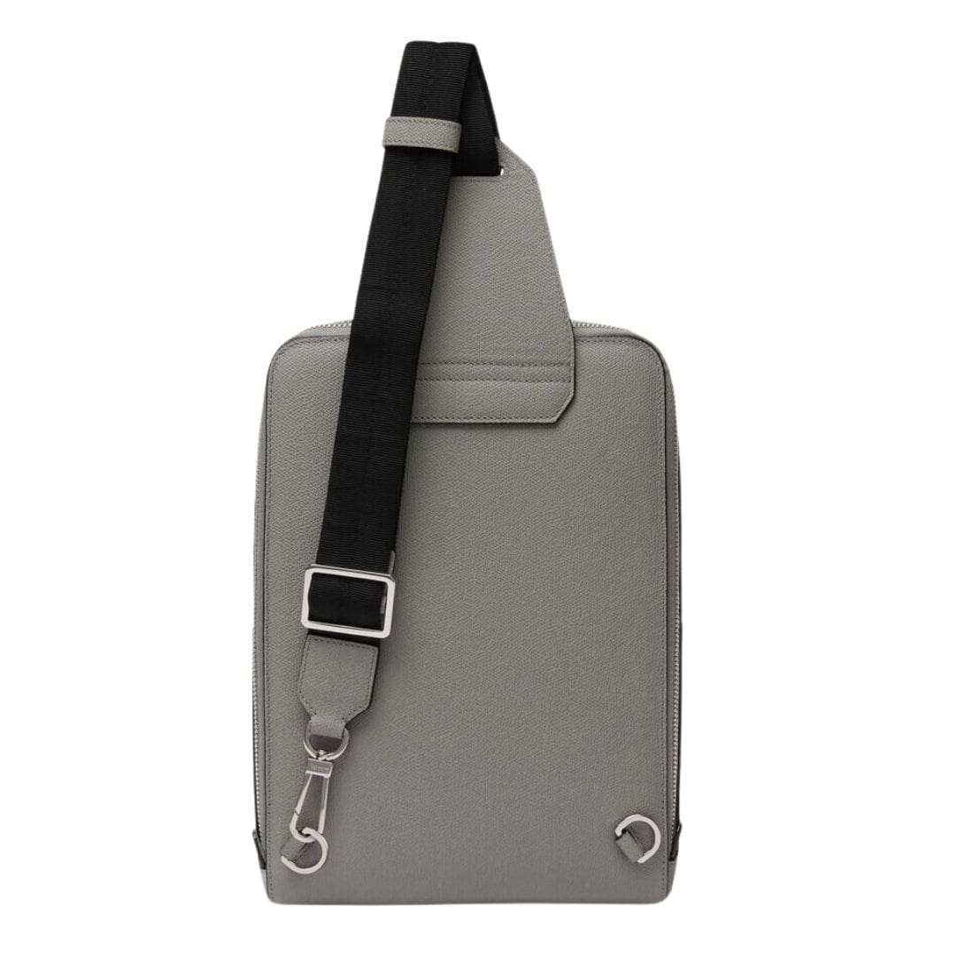 Introducing the valextra  V-line Intrasia One Shoulder Backpack, available in a trio of sophisticated shades that accentuate its exceptional craftsmanship. Crafted from our versatile Millepunte calf leather in Valextra Black, cement, and stone grey, this backpack effortlessly enhances both formal and casual attire. Perfect for everyday commuting, its main compartment accommodates an iPad and other essentials, while an additional pocket securely holds cards and passes. With an adjustable metal hoop, it seamlessly transitions from shoulder to shoulder, embodying refined comfort for modern lifestyles.