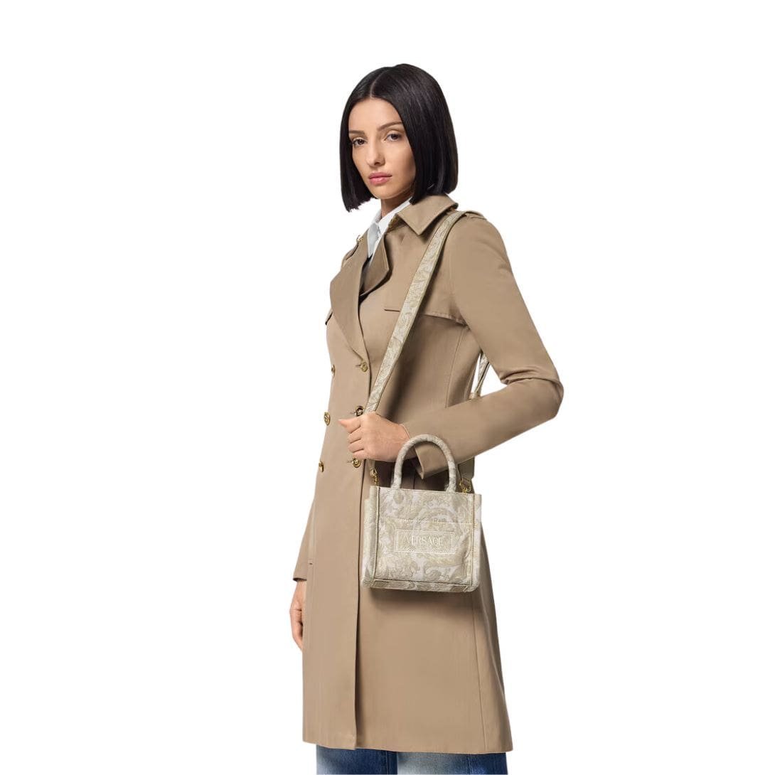 In conclusion, the Versace Barocco Athena Extra Small Tote Bag is a true masterpiece that embodies the epitome of luxury and style. With its exquisite craftsmanship, iconic design, and practical functionality, it is more than just a fashion accessory—it is a symbol of prestige, refinement, and enduring elegance.