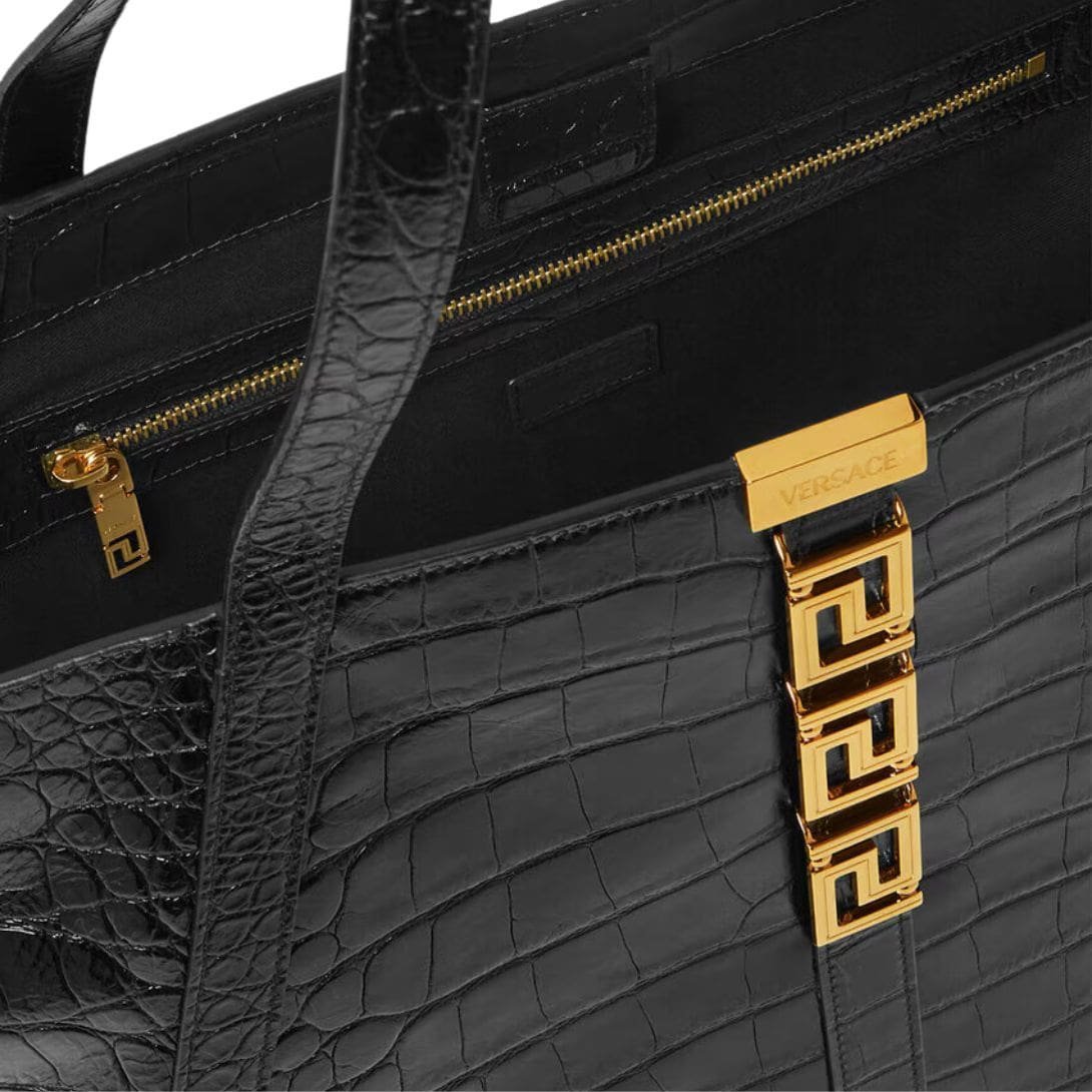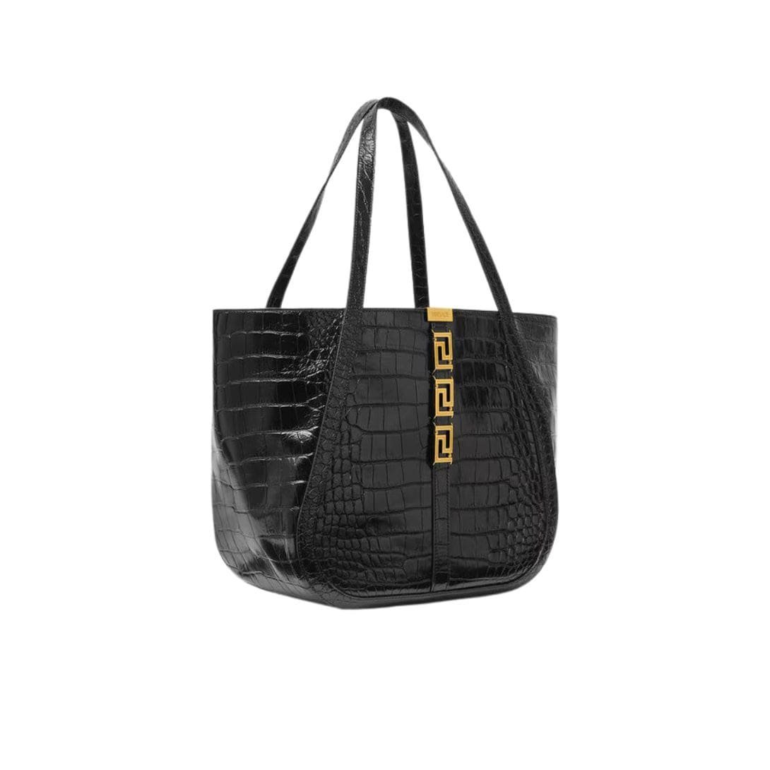 VERSACE CROC-EFFECT GRECA GODDESS LARGE TOTE BAG