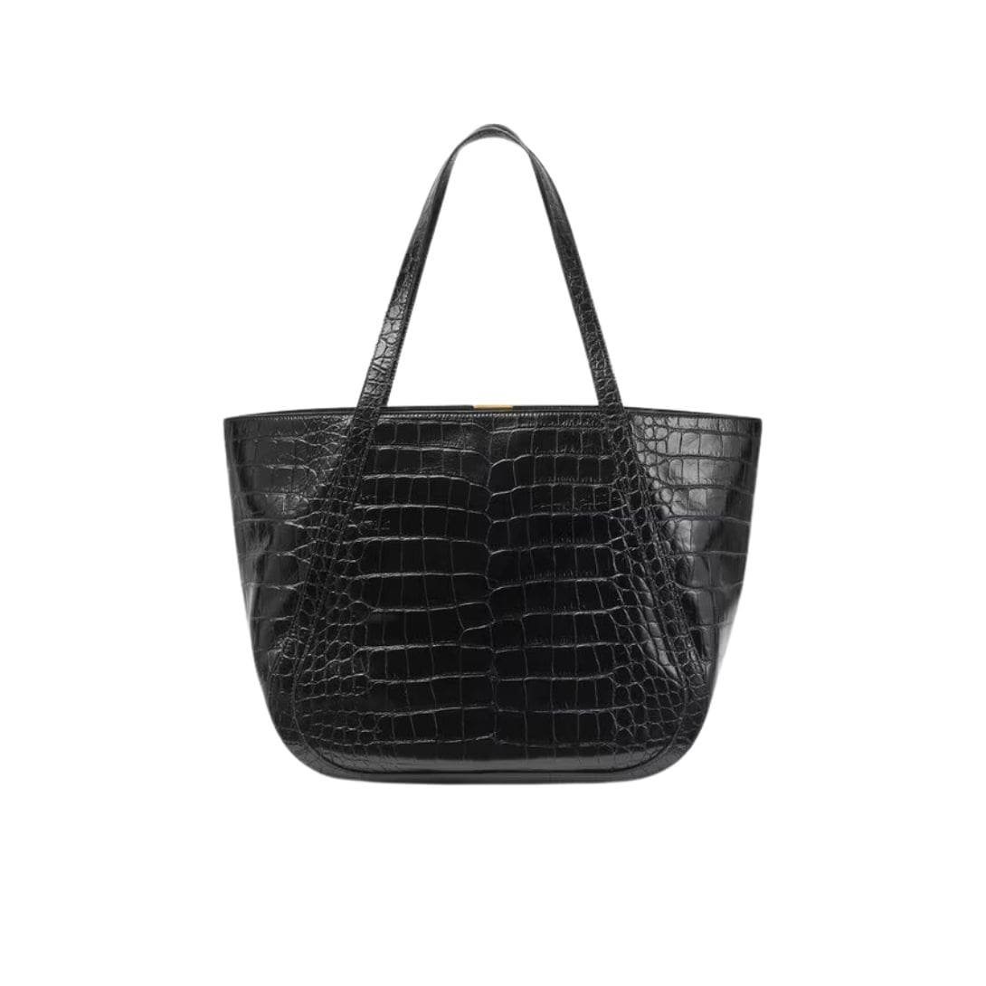 At first glance, the bag’s exterior captivates with its luxurious croc-effect leather, meticulously embossed to resemble the exquisite texture of genuine crocodile skin. The rich, lustrous surface exudes a sense of lavishness, accentuated by the deep, sumptuous tones that play with light and shadow.