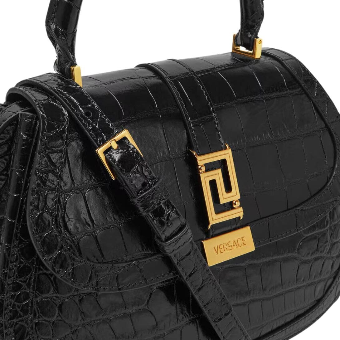 VERSACE CROC-EFFECT GRECA GODDESS TOP HANDLE BAG