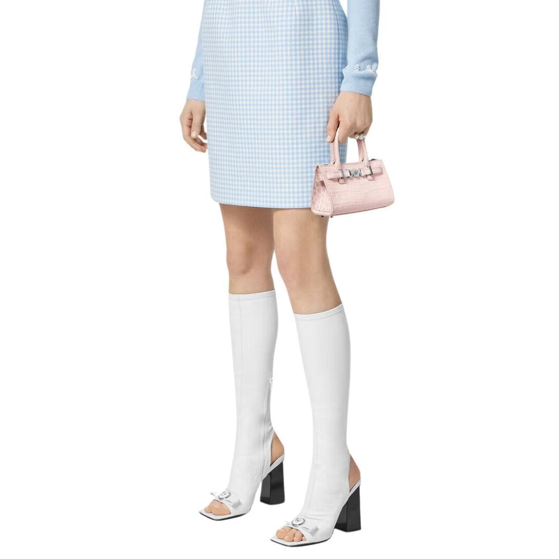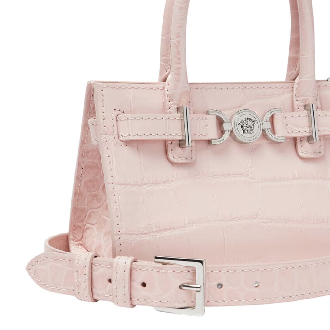Carried by the top handles or worn across the body with the adjustable shoulder strap, the Versace Croc-Effect Medusa ’95 Mini Tote Bag is more than just an accessory—it’s a statement of sophistication, a testament to refined taste, and a timeless investment in luxury fashion.
